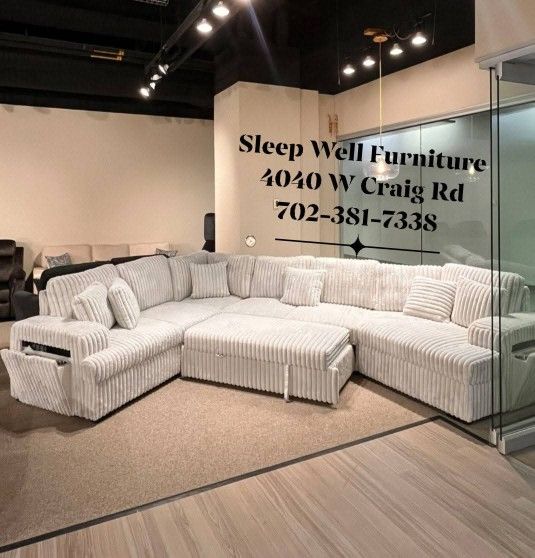 Sectional Sofa Sleeper with storage chaise chaise Starting 👉👉$1099 Many styles colors available 🙋♂️👉SLEEP WELL FURNITURE 4040 W CRAIG RD LAS VEGAS Open 10-7pm Hablamos Español 👉We offer Financing💲 Take home it Home 👉$50 DOWN No credit required, Zero interest up to 120 days Select from Koalofi, Synchrony, American First, Progressive finance. Furniture Sectional Sofa Queen King Mattress Bedroom Bunk beds Dining table sets