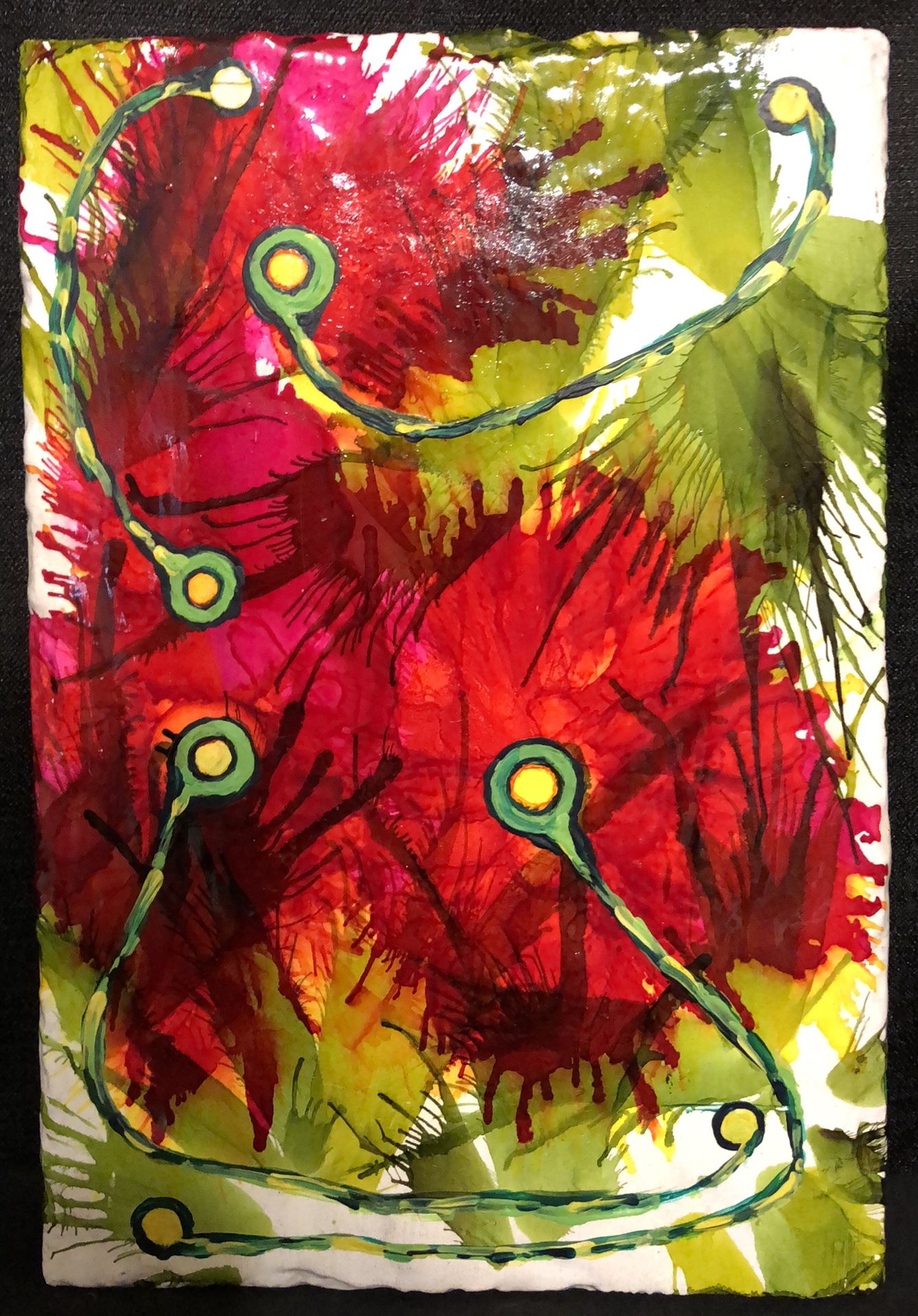 Hand Painted Abstract Floral Slate Ready to Hang Artwork