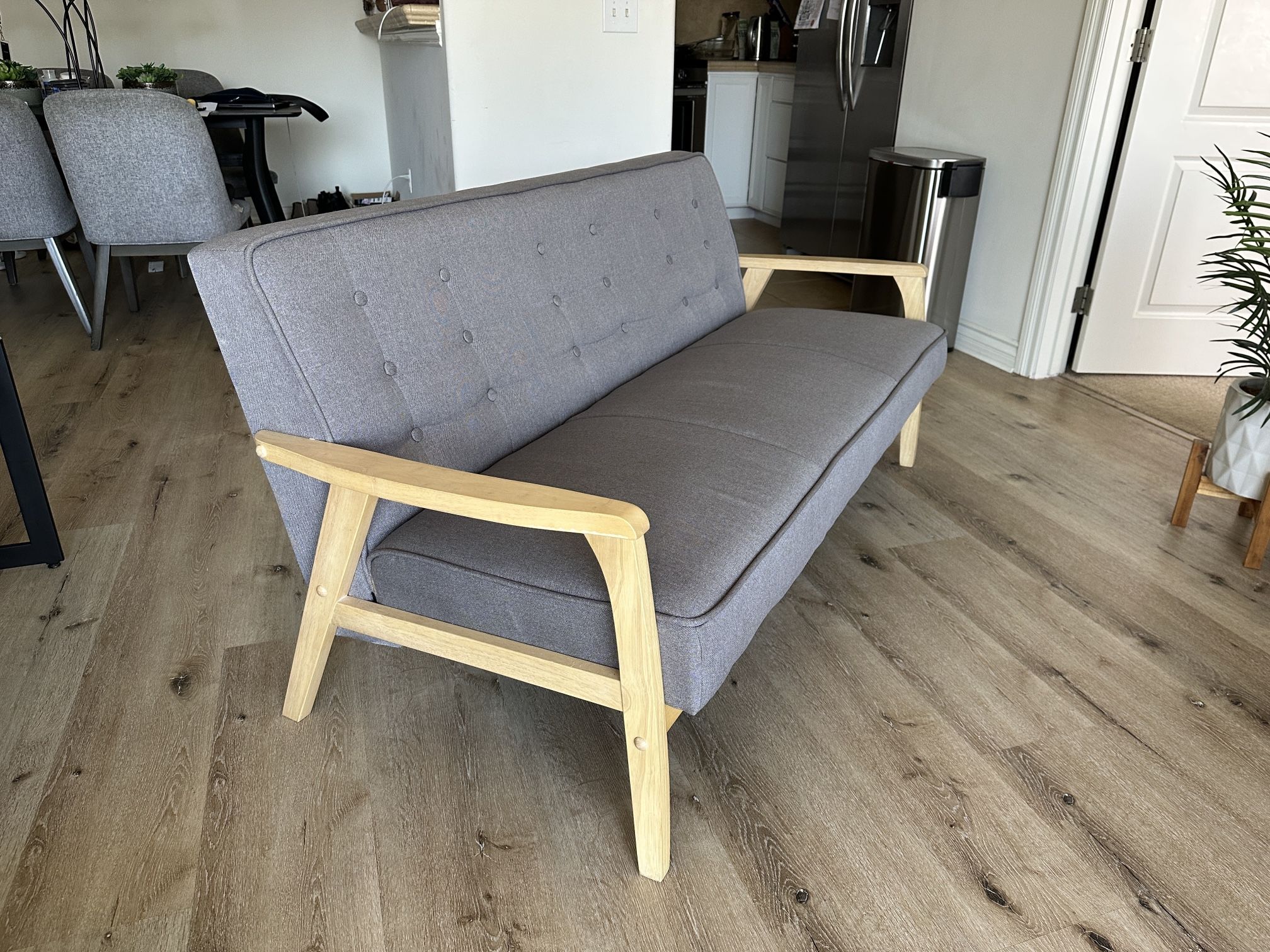Smoke free & pet free Overall: 31.5"H X64"WX28" D Seat: 15.5" HX 58"WX20" D Weight: 63 lb. Located in Palms