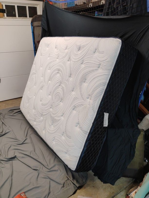 Pillow top queen size mattress and excellent condition has been in a storage in a bag last 2 years. Has one small hole in the back from handling. Does not require a box spring,12 inches thick .No stains or damage in the front or sides of mattress like new condition. Beautiful and comfortable