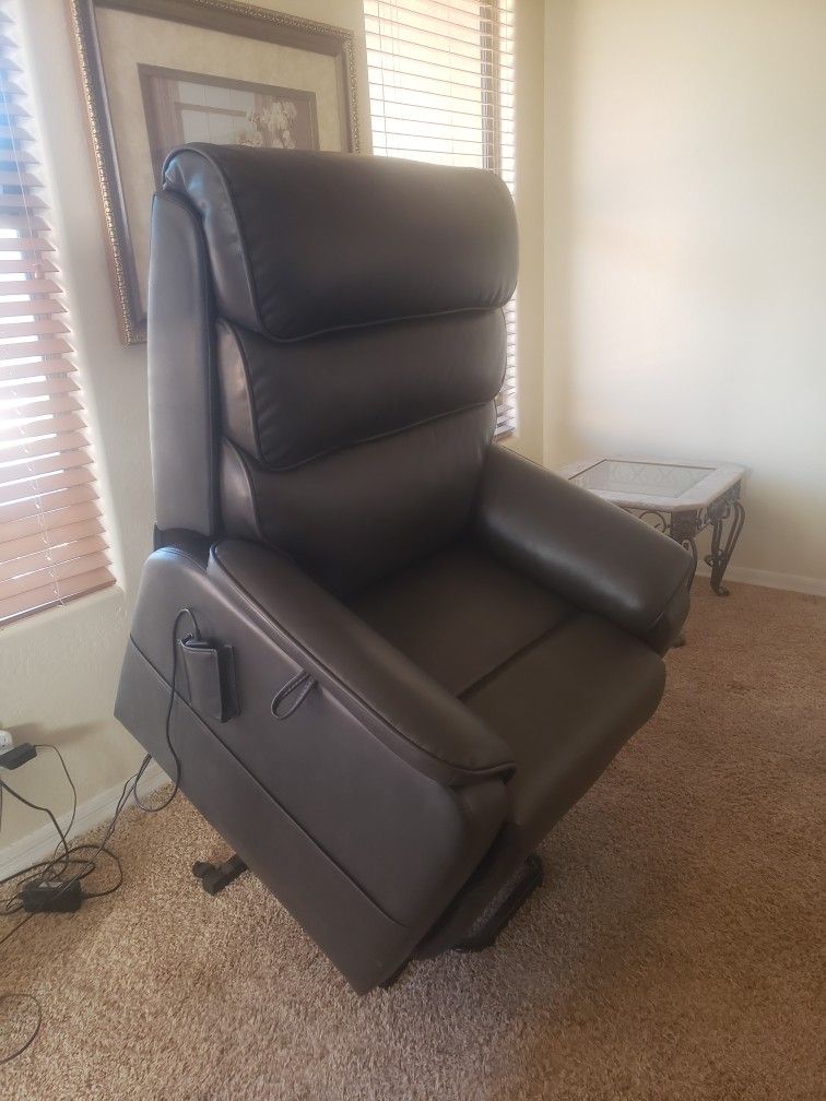 Wide new lift recliner chair. The person it was purchased for was never able to use it. Lays flat, foot rest elevation. Heat and massage. Two motors.