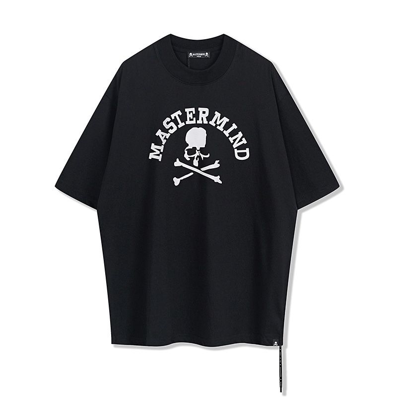 "Brand: Mastermind Japan Color: Black Size: M Same style for men and women Loose fit Mastermind Japan black short-sleeved T-shirt with skull and lettering print"