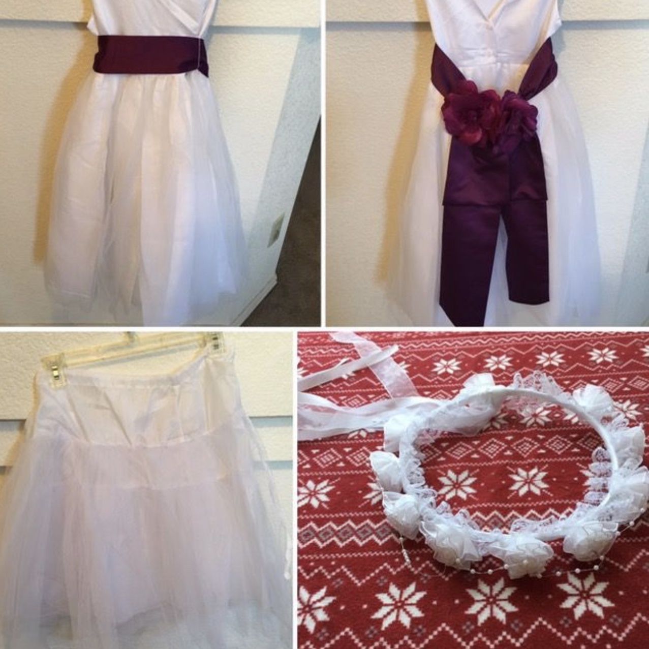 Beautiful flower girl dress, kids size 6. Slip & head piece included. In perfect condition, only worn for a couple of hours. Firm on price.