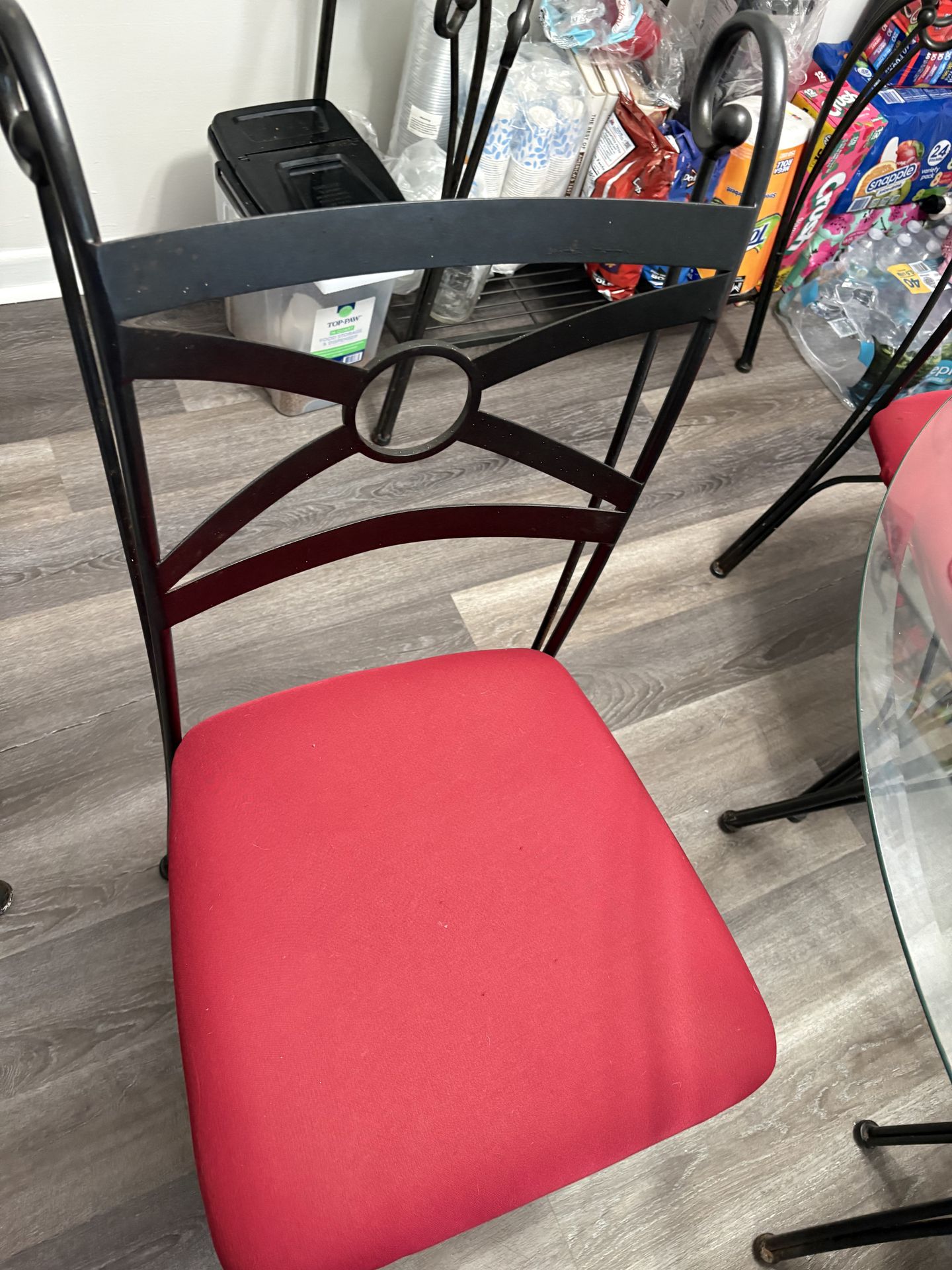 Round glass table with Metal base and Four Chairs ,that has a removable Covers!
