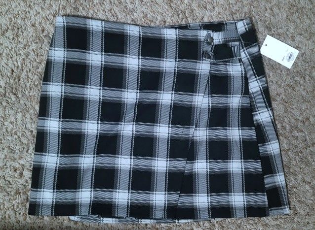 New Plaid skirt. Size XL Looks like skort style but it's a skirt. Blk/white. Has some stretch. Smoke&pet free home