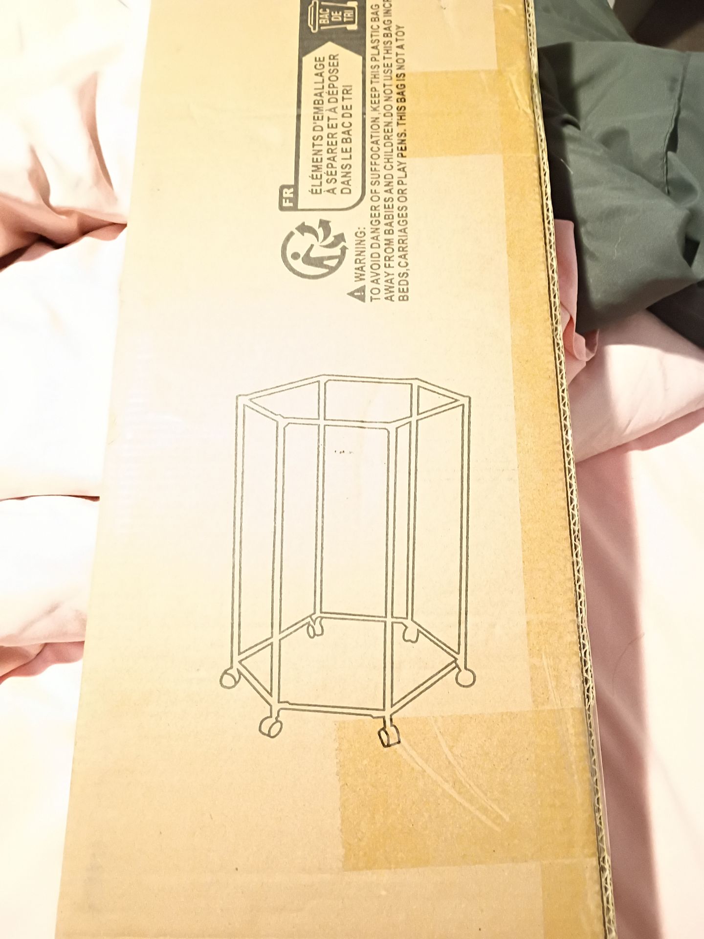 This is a octagon shaped Rolling clothes rack to hang clothes on it is brand new in box never opened. $5
