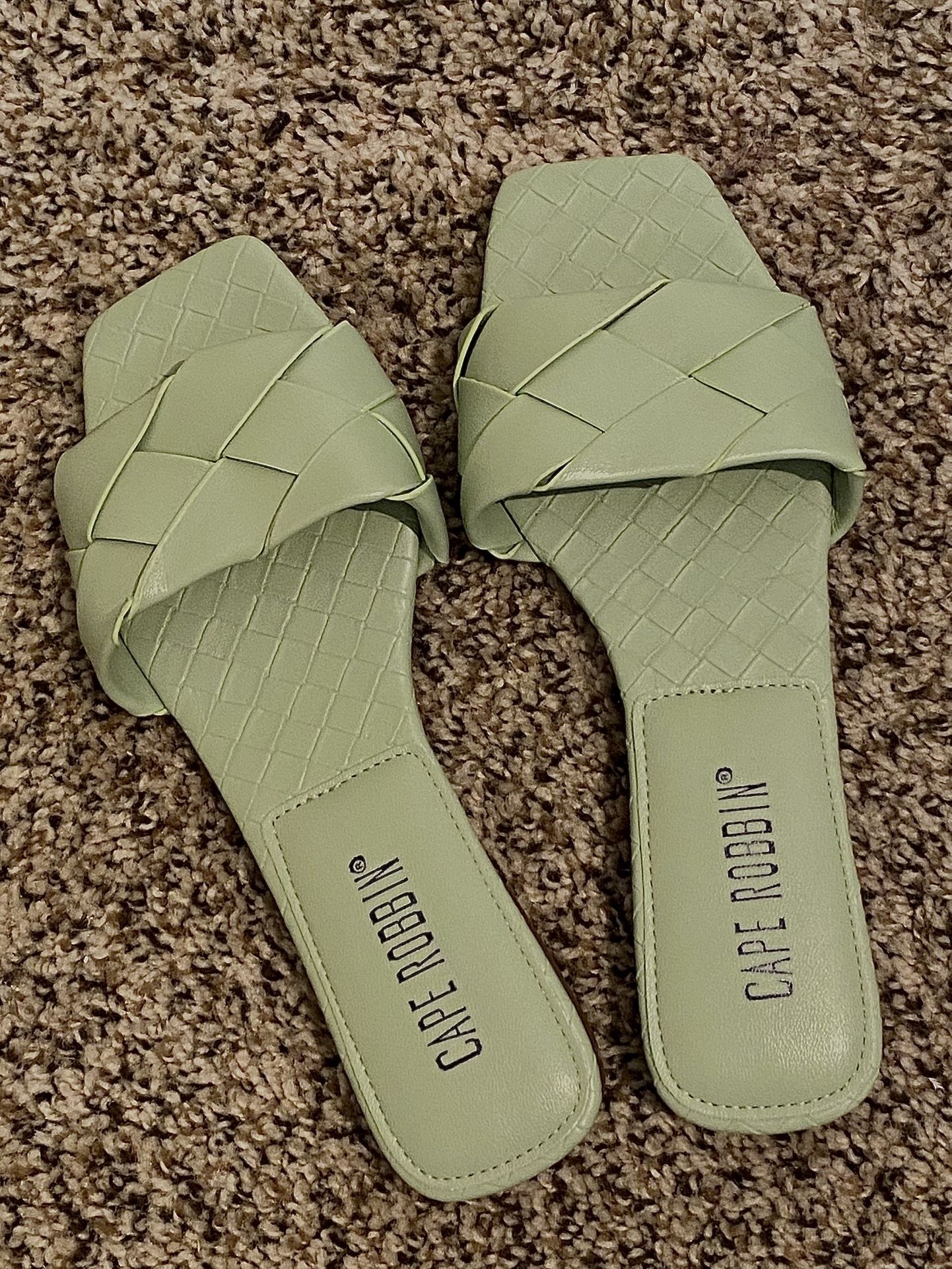 CAPE ROBBIN, Trendy Sage Green Woven Slide Sandals, Women’s 6