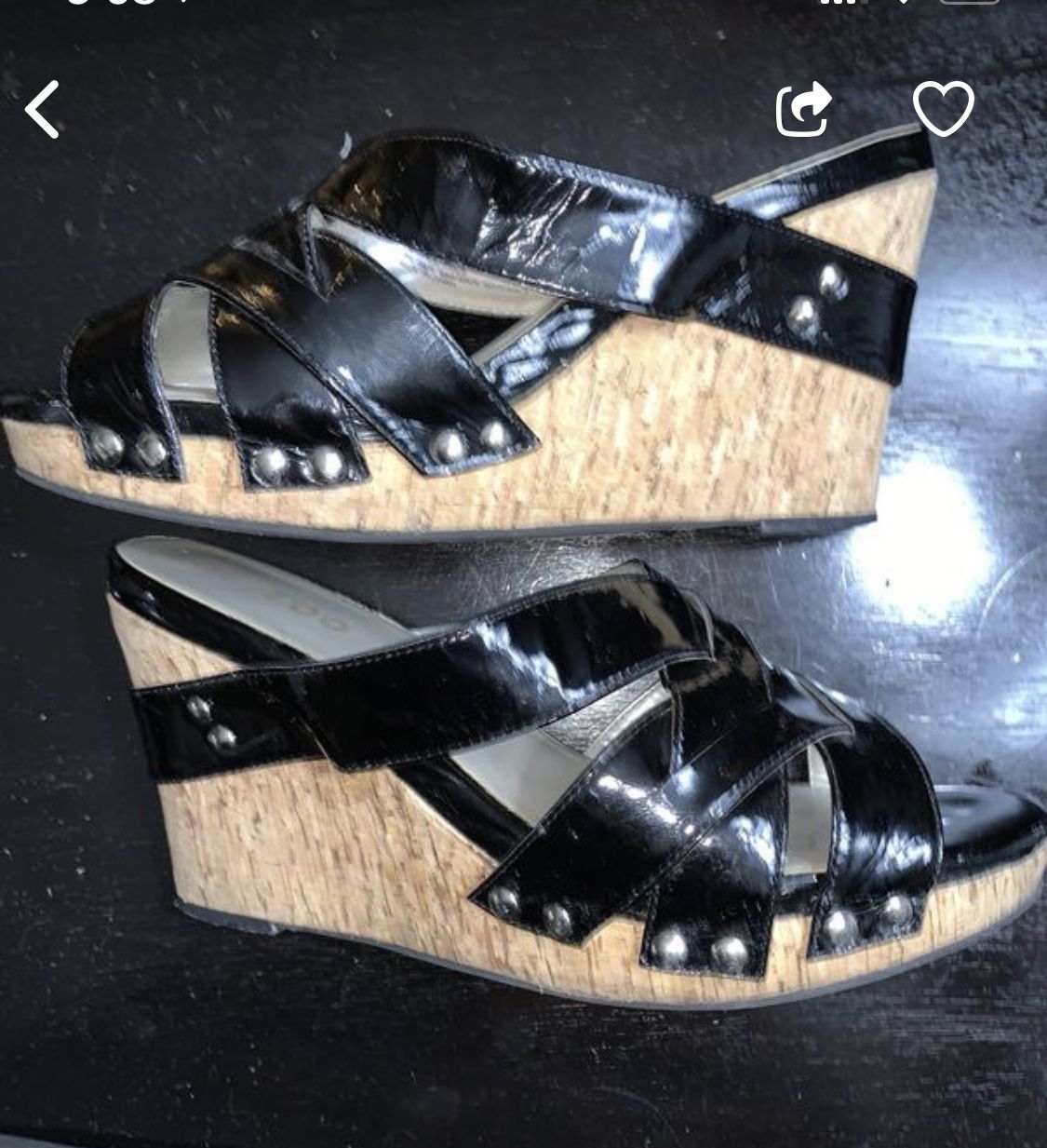 All shoes rarely worn; good shape. Silver Guess Boots 9.5 Black strap wedge 10 $20 for both pairs or $15/each