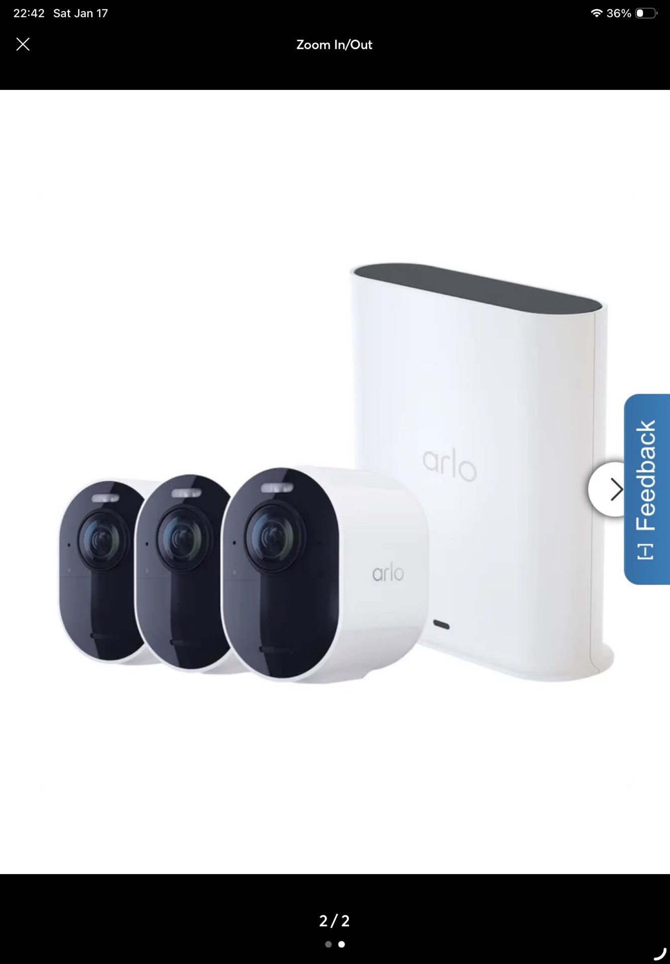 Arlo Ultra Security Camera 4K (3rd Gen), 3-pack, White with Smart Hub