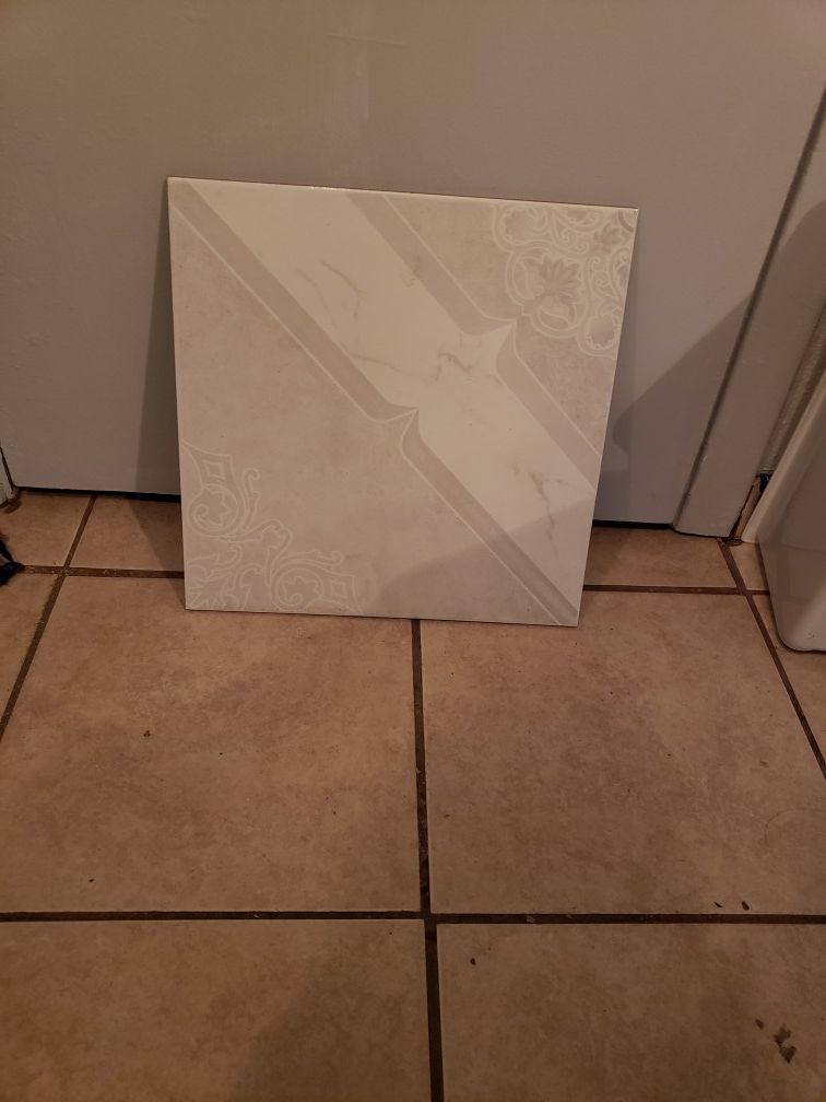 White w/grey ceramic tile 117 pieces, 13 1/8 “ X 13 1/8” & $150.00 . Se hable español, 75043 área. If it’s posted it’s available. Need it gone ASAP interested buyers only.