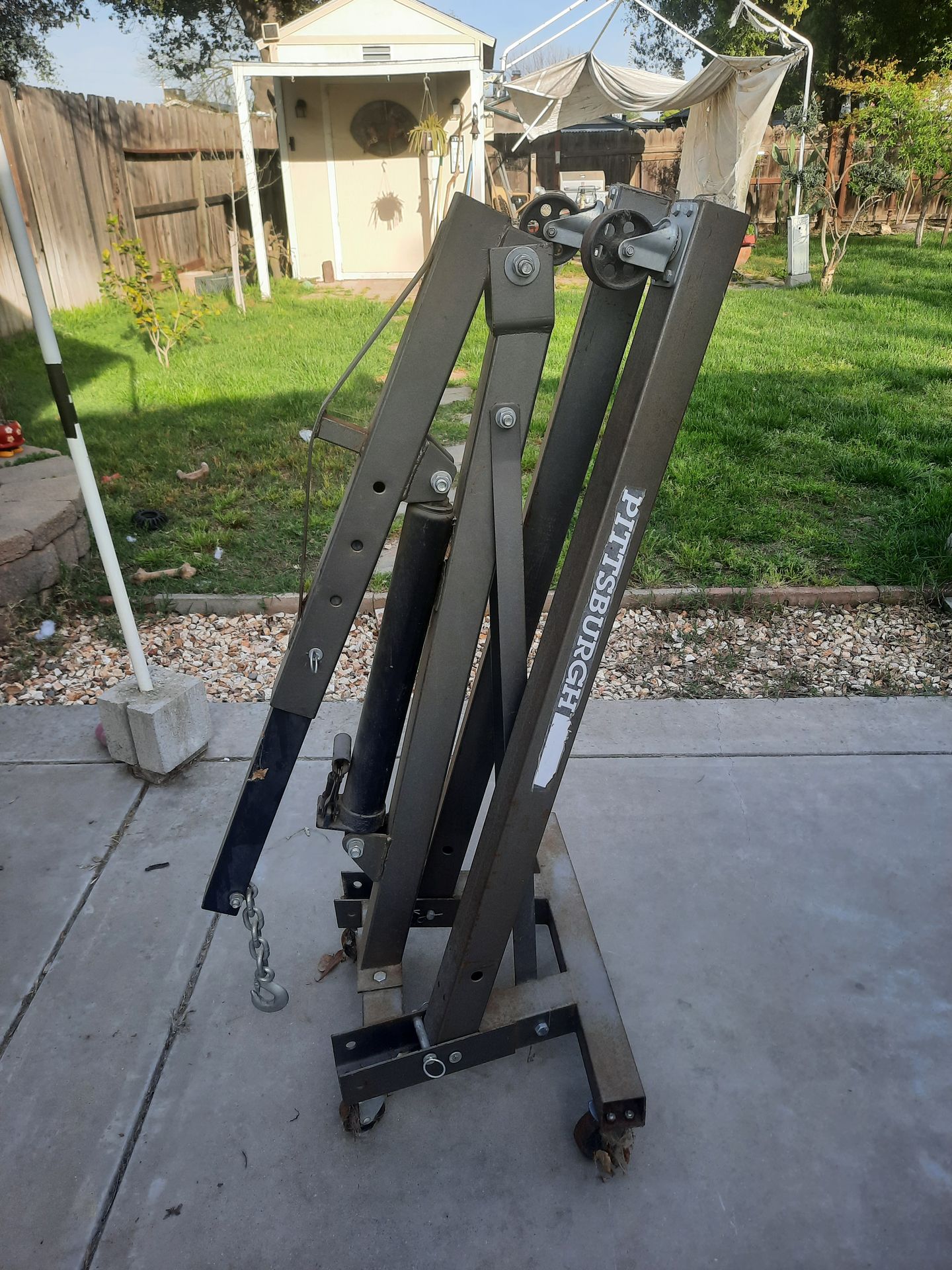 I'm selling my Pittsburgh shop crane! Only used 3 times! Works great! Selling because I just don't need it anymore! You can test it out if needed! PICK UP ONLY! SERIOUS BUYERS ONLY!