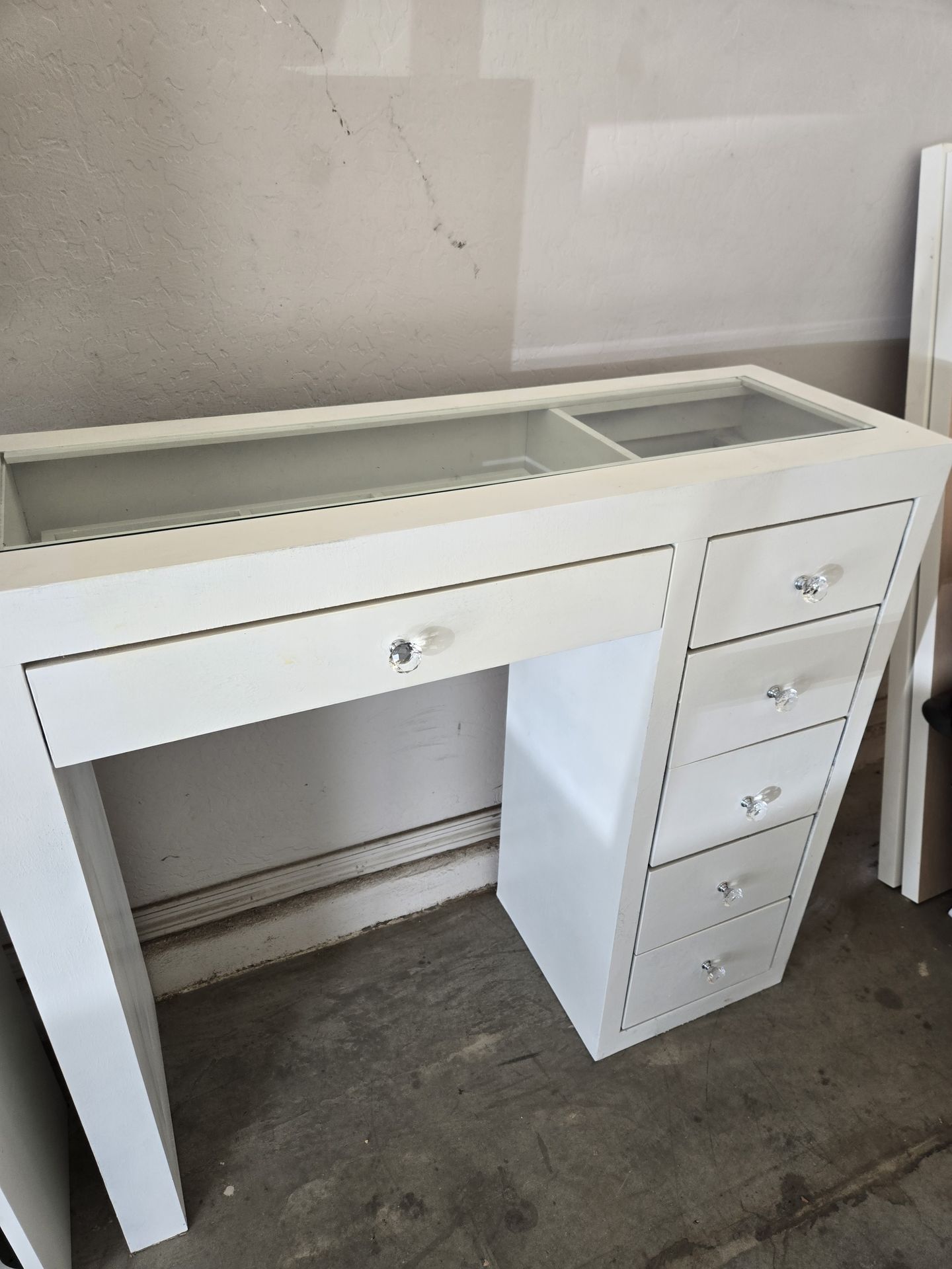 Used white vanity. Drawers all slide nicely but the paint needs some TLC. I'll post dimensions shortly. Took a pic when cleaning garage and forgot about it. Cross streets 91st Ave & Northern in Glendale. Pick up only week days between 5pm-8pm or any time on weekends. No holds. Cash only.