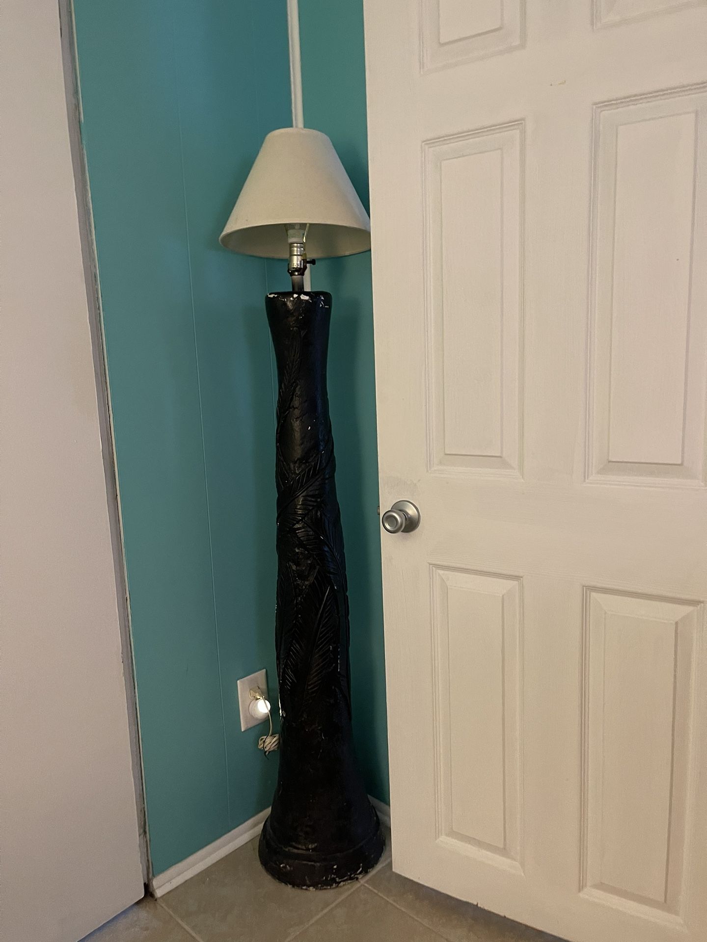 Large floor lamb It’s like stone material Can be spray paint to different color Heavy $35