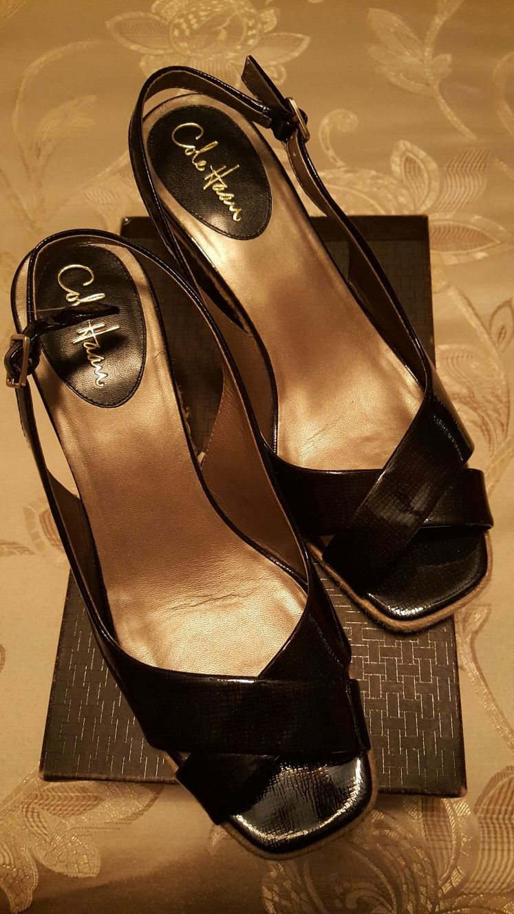 COLE HAAN LIKE NEW BLACK PATENT WEDGES