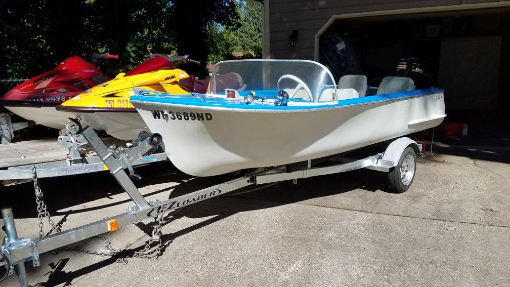 Excellent running condition!! We are selling our 1958 Johnson SeaKing boat with brand new trailer. Super clean and runs great. Turn key and go zero issues. This little 14' is perfect for ages. Comes with all the necessary equipment needed. Asking $4200 obo. Can deliver serious inquiries only please.