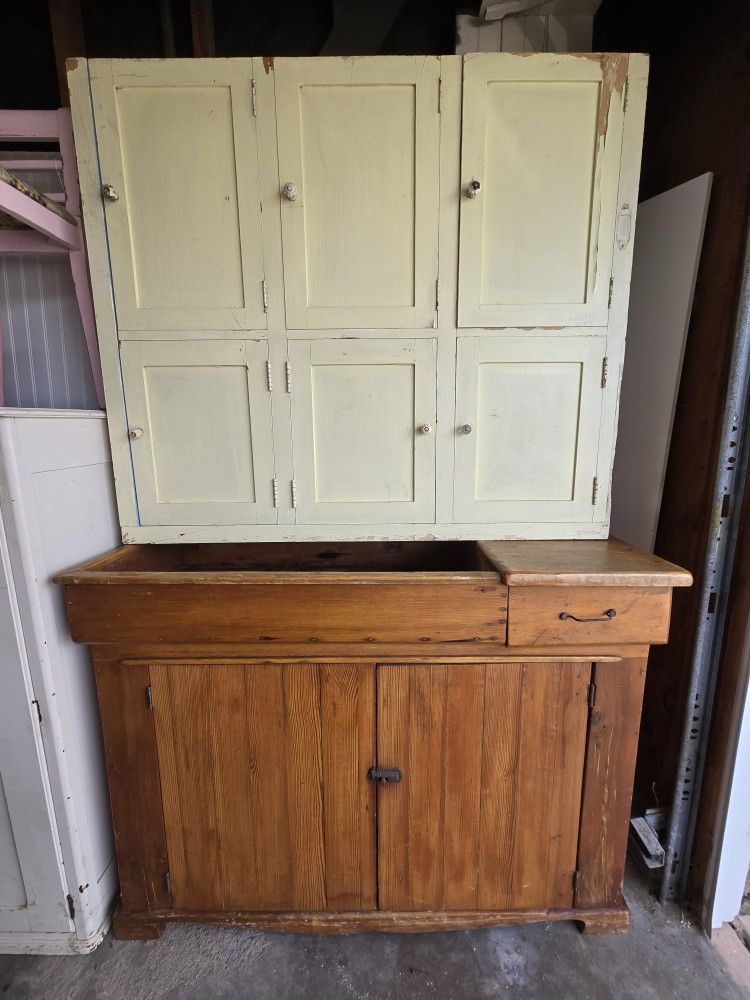 Antique Dry Sink with 2 door cabinet, 1 drawer and counter top. All wood in very good antique condition with appropriate signs of age. Perfect for Farmhouse decor! Does not include vintage cabinet. Measures approx: 51"L x 37-3/4"H x 19"D *Cash only I have a garage full of vintage and antique furniture, dishware, and art, etc. Let me know if you would like to stop by to shop!