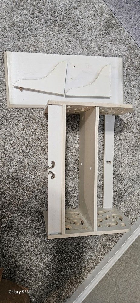 Desk book shelf. With another extra shelf. Little discoloration. Sturdy and works fine. No cracks or dent.