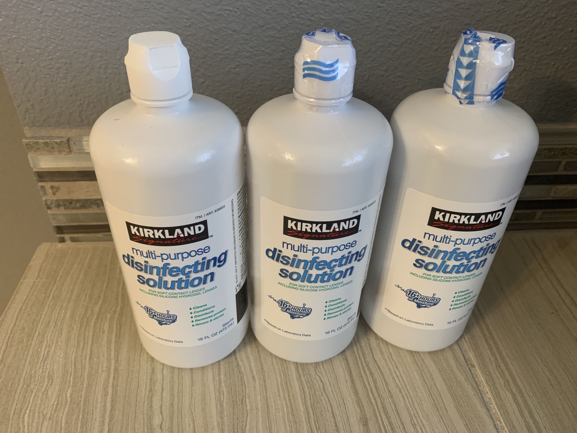 Costco brand contact cleanser. Good product but I have more than I need and cannot return. 2 of the 3 bottles are unopened. The opened bottle has only been used a few times and has almost all the cleaning fluid in it. Retail value $10 at Costco warehouse.