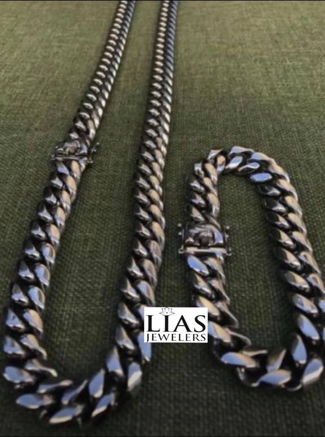 Brand new 18 k white gold filled Cuban link chain and bracelet Available in most sizes! Also have men’s jewelry Cuban link set men’s necklace chain bracelet Miami Cuban link tennis link set Figaro chain set
