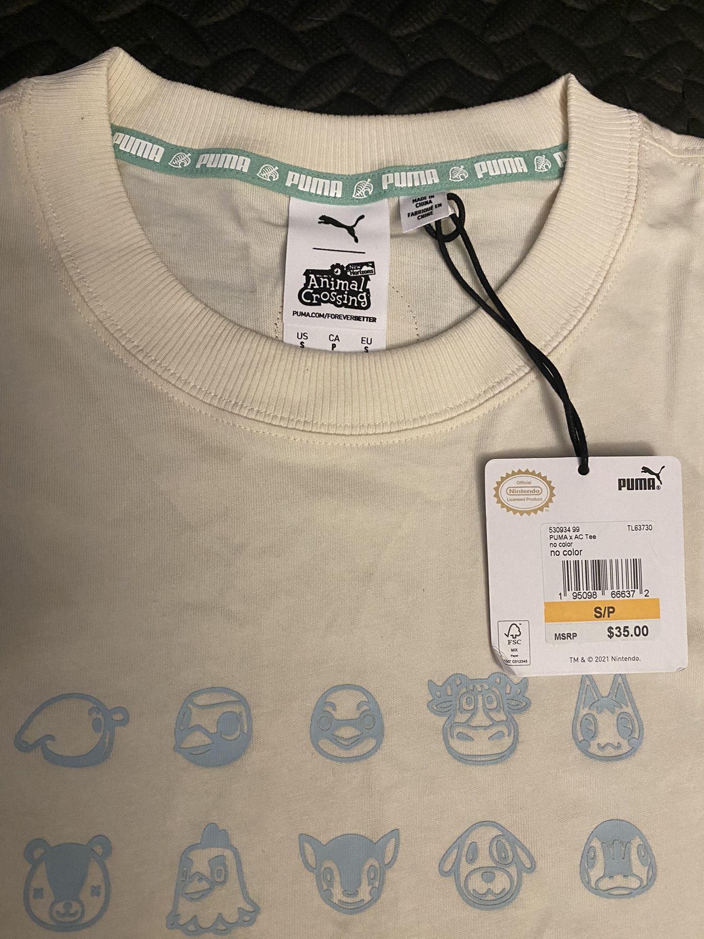 PUMA X ANIMAL CROSSINGS NEW HORIZONS MEN SHORT SLEEVE T-SHIRT SMALL NEW. In-Hand Ready to Ship. No Major Flaws Seen. Please see pics above for closer look at product n measurements. Legit Seller. Measurements: (Each is a real close approximate) Pit to Pit: 20” Shoulders: 15.75” Sleeve Length: 7” Hem: 20” Length: 28”