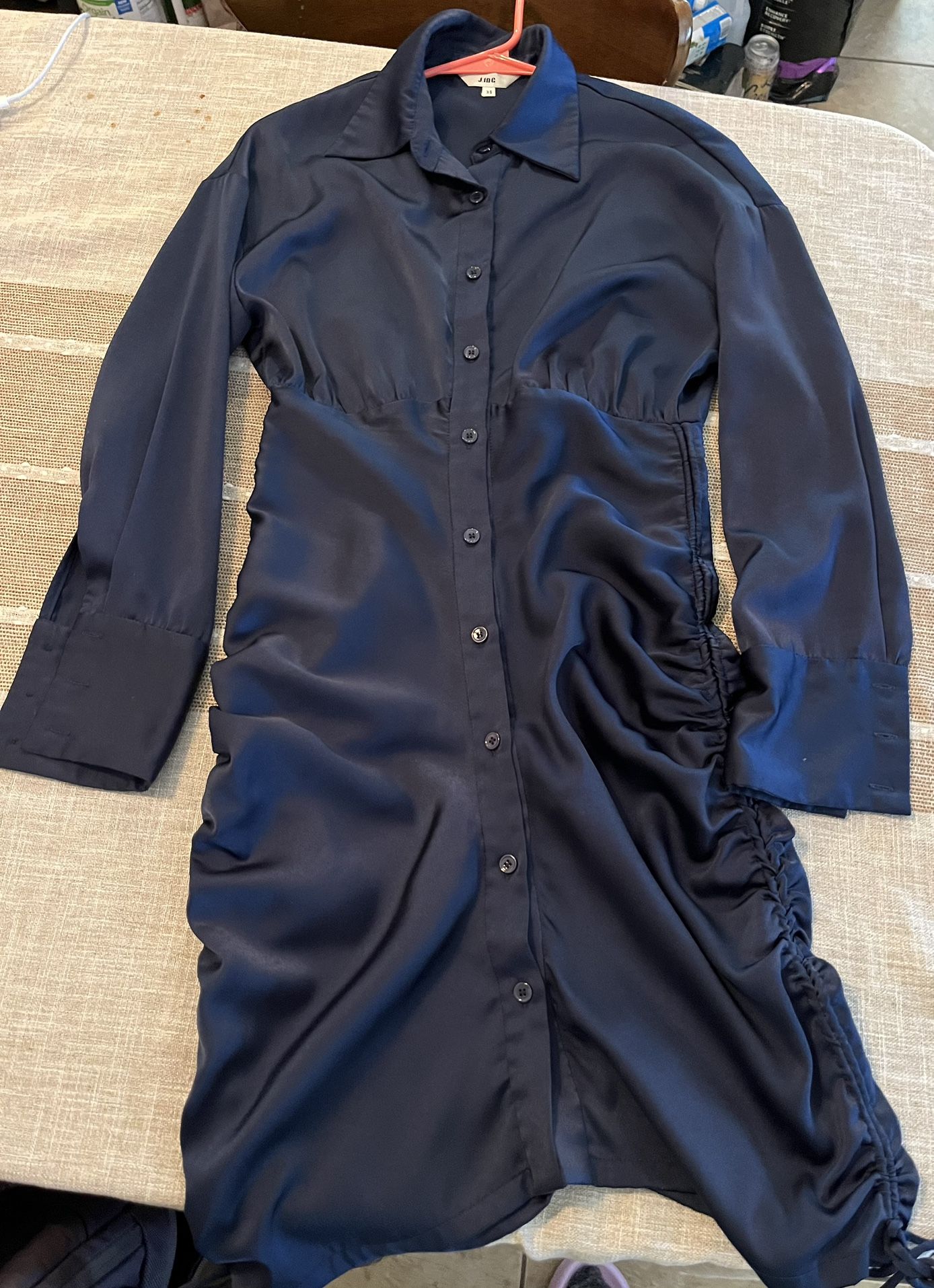 This sophisticated sheath dress by https://offerup.com/redirect/?o=Si5JTkc= is perfect for work or cocktail events, featuring a sleek black color and a unique asymmetrical ruched design. The long cuffed sleeves and collared neckline add a touch of elegance, making it a versatile addition to your wardrobe. Pick up Tempe