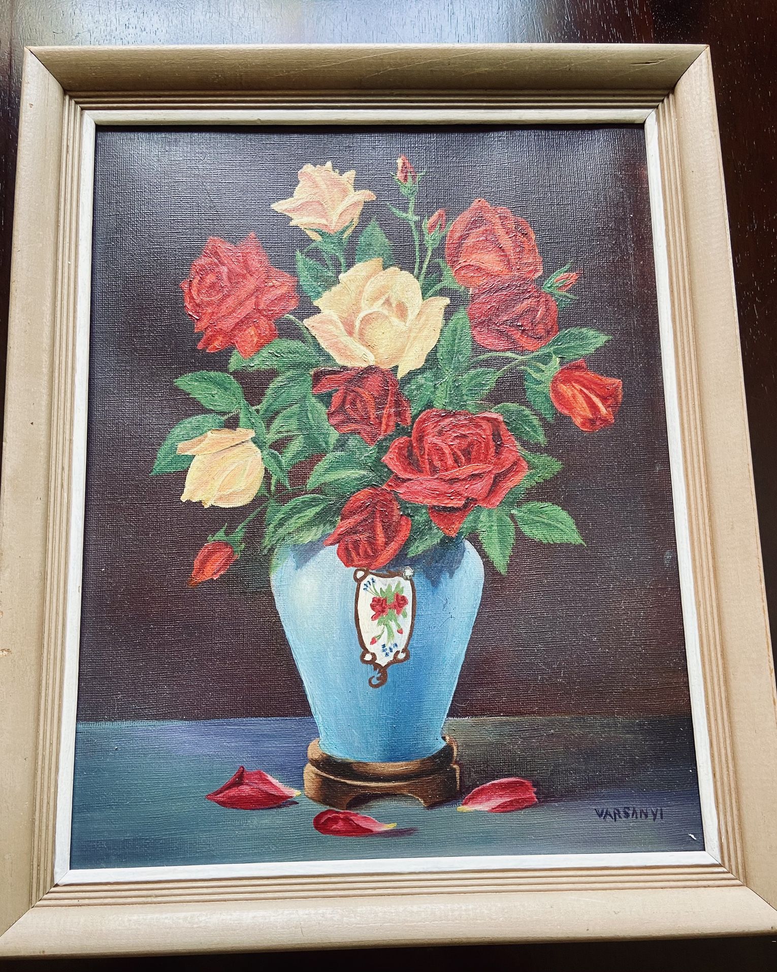 This eye-catching oil painting by Joseph Varsanyi of Philadelphia was completed in 1955. The painting is 69 years young, has vibrant colors and is in very good condition. Joe was an amateur painter who has many other works that will someday be shared. For now, enjoy!