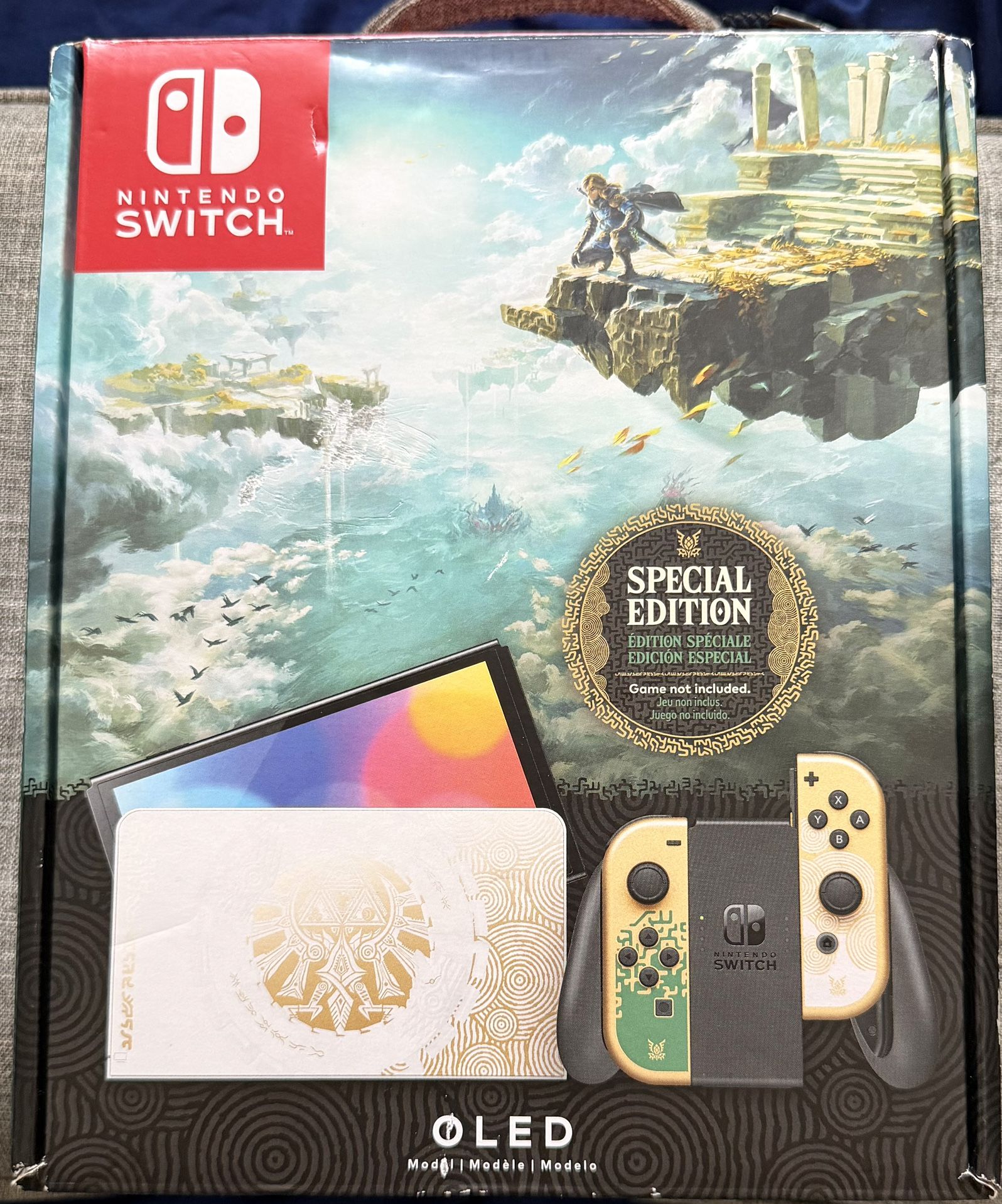 Slightly used in very good condition. 10/10. Comes with original box charger paperwork tempered glass screen protector already installed perfectly. All original accessories included plus Zelda blue case and pair of Blue neon joycons. None of joycons are under the joycon drift affect.