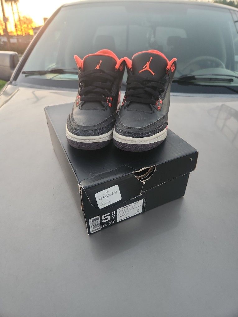$ or best offer Pickup San Gabriel 91776 Selling authentic 2013 Air Jordan 3 Retro in the "Bright Crimson" colorway. These are Grade School (GS) size 5.5Y, which fits like a Women’s size 7. Color: Black / Bright Crimson / Canyon Purple Condition: Used. See photos for condition. Midsoles are firm and Air units are intact. Style Code: 398614-005 Release Year: 2013 #Jordan3 #Retro3 #JordanGS #Sneakerhead #Jumpman #BrightCrimson #Size5.5Y #NikeAir #JordansForSale #SneakerCommunity