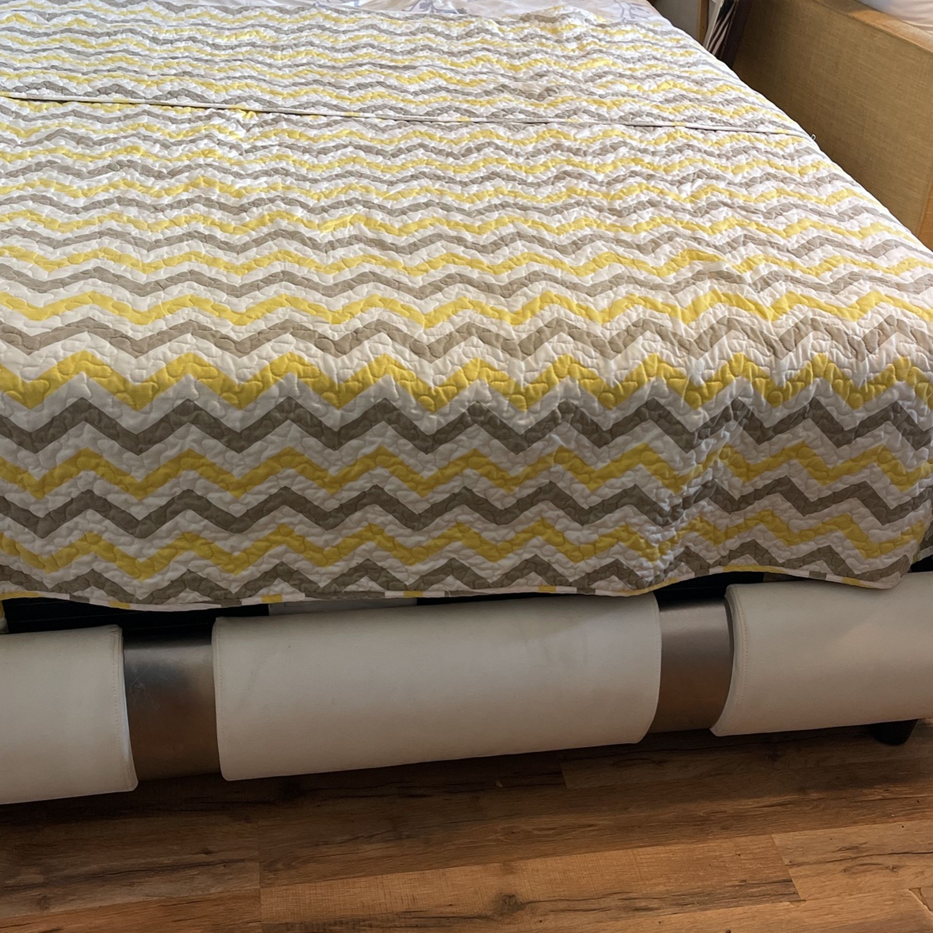 White leather Queen size bed. Only two month old Good condition & mattrees is new one moth old Bed only$150. Mattress only 50. Together $200. serious buyers only know negotiating