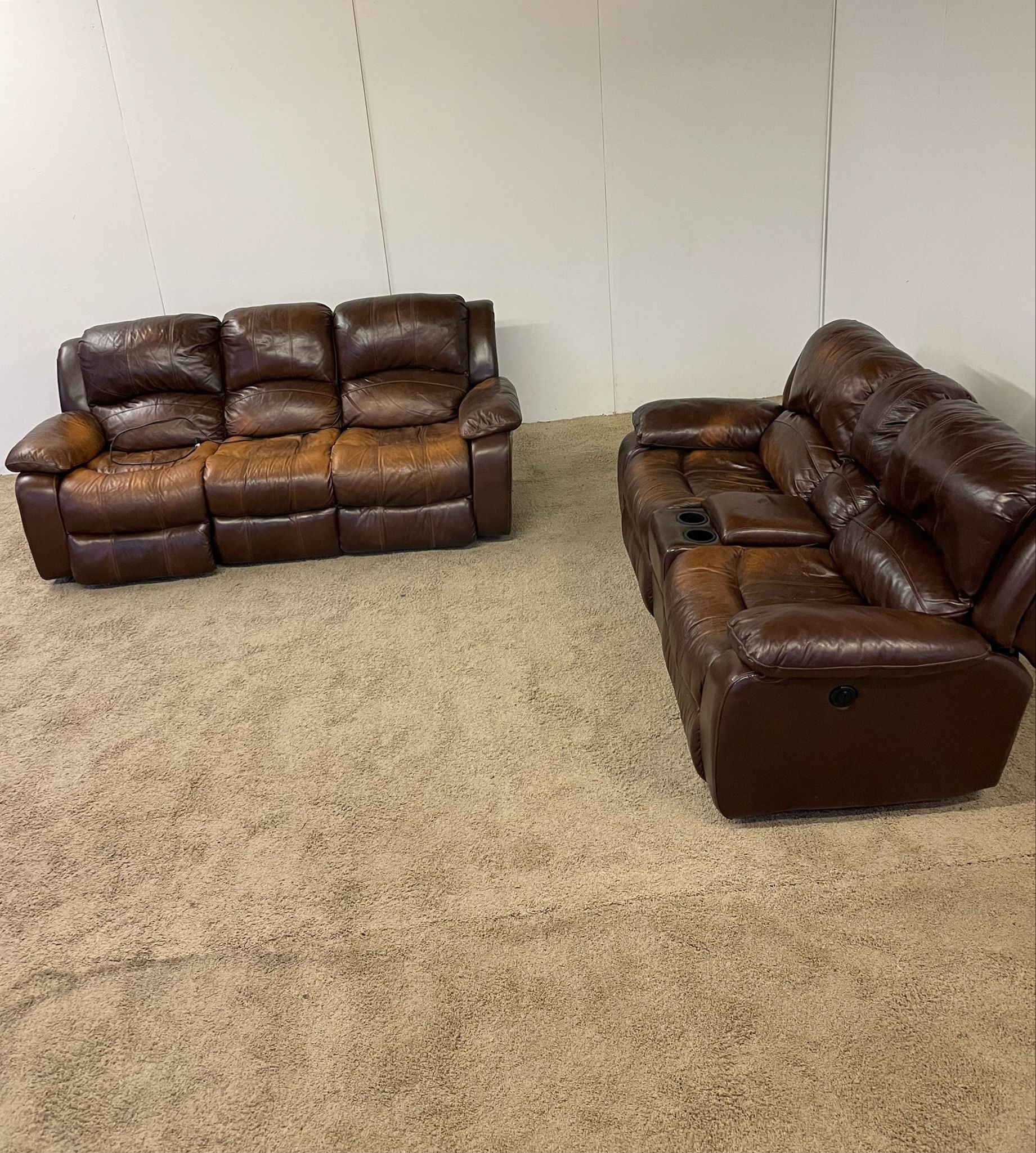 Order and schedule your delivery at OneUpFurniture.com Over 50 sets to choose from We are trusted and have 100+ reviews on Google. Item Notes: Great overall condition No rips, tears or stains (seat cushions have decent amount of wear) All ends recline (all are fully functional) Very comfortable Measurements: Couch: 89” Loveseat: 77” Height: 38” Depth: 40”