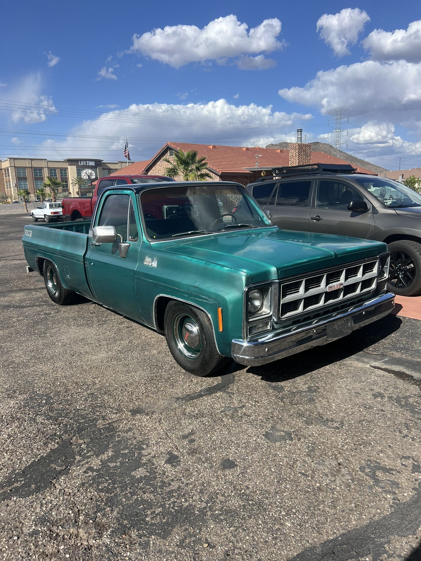1979 GMC Sierra Heavy Half Clean title Odometer reads 27,xxx 350 Cl V-8 engine Turbo 350 automatic transmission Original Green exterior New Black and Green Houndstooth bench seat interior Updated dash and door panels New carpet Updated lowered suspension with drop spindles Updated power steering unit New fuel pump, starter and aluminum radiator New front disc brakes New wheels and tires Arizona truck New tires Asking 12500 obo