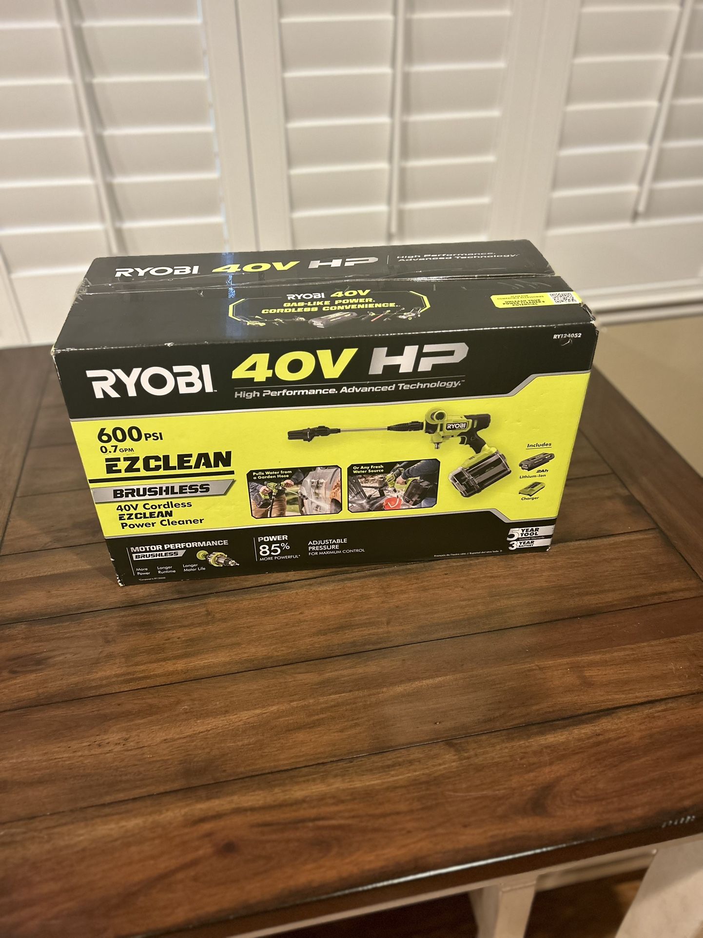 Brand New still in box unopened. 40-Volt HP Brushless EZClean 600 PSI 0.7 GPM Cold Water Power Cleaner with 2.0 Ah Battery and Charger.