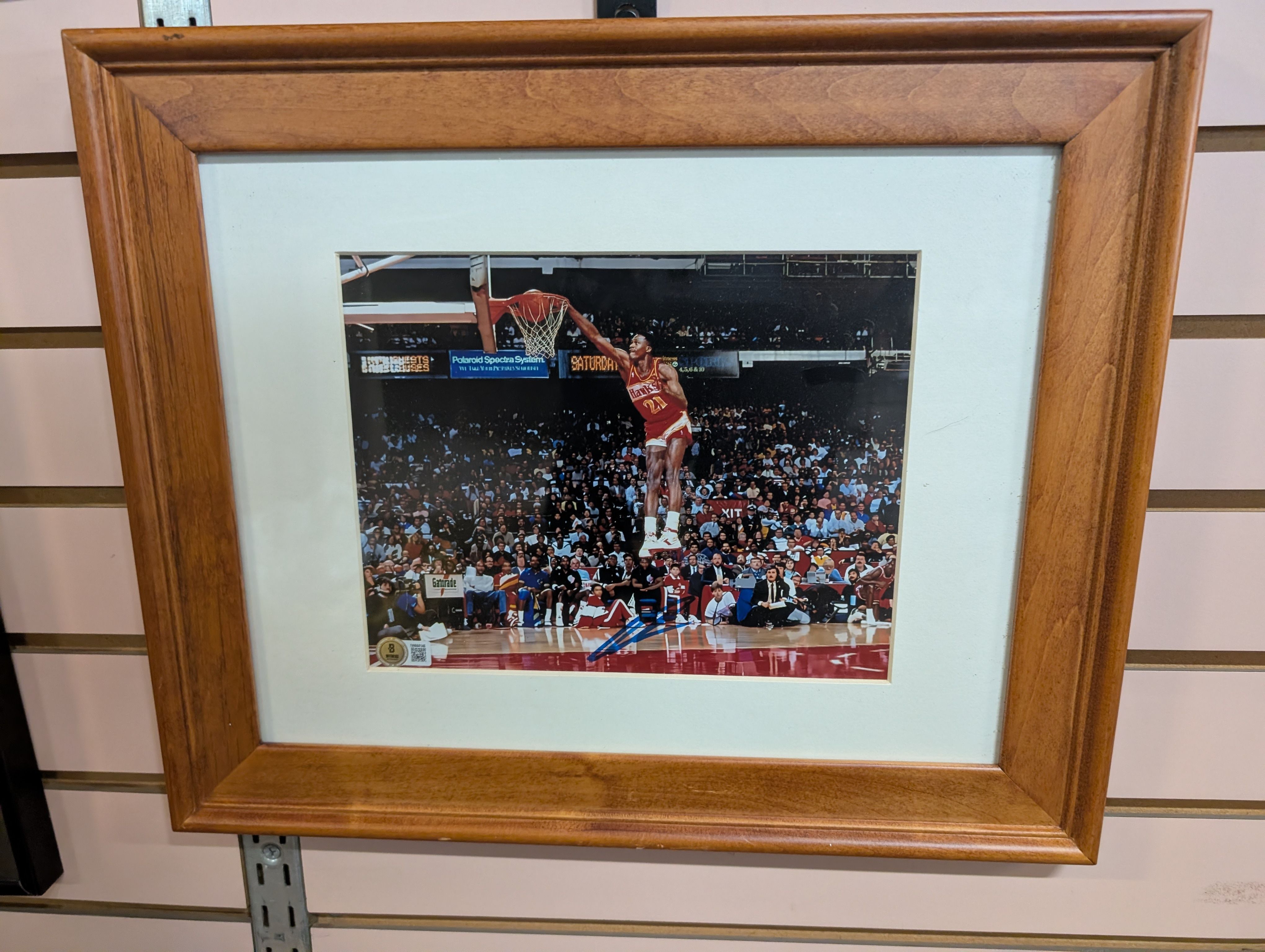 Dominique Wilkins signed autograph framed basketball action photo featuring an iconic in-game moment. Professionally framed display honoring “The Human Highlight Film.” Pre-owned with light frame wear; photo and signature remain clear. - I'm Located in Stockton I'm Also willing to trade / barter for any of the following: Cellphones Video Game Lots (Nintendo, Super Nintendo, N64, Sega) LEGO Pokemon Items Sports Cards Tools Computers Jewelry (Rings, or Necklaces) Disney Collectibles Vinyl Records Toys (Collectibles, 90s, Games, Vintage) Sports Collectibles Silver Tablets Shelves / Shelving Antiques Arcade / Skill Games Wall Art Chainsaws Landscaping Tools Mancave Items Retail Displays Autograph Items Sculptures / Statues Cast Iron Decor Pottery Yard Art Magazine Lots (LIFE, Sports Illustrated) Historical Items