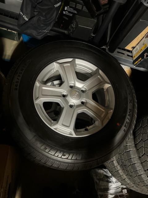 Full set of 2022 Jeep Gladiator wheels with tires brand new 17” letting go for a good deal! Bought aftermarket wheels right when I purchased the vehicle so there are brand new!