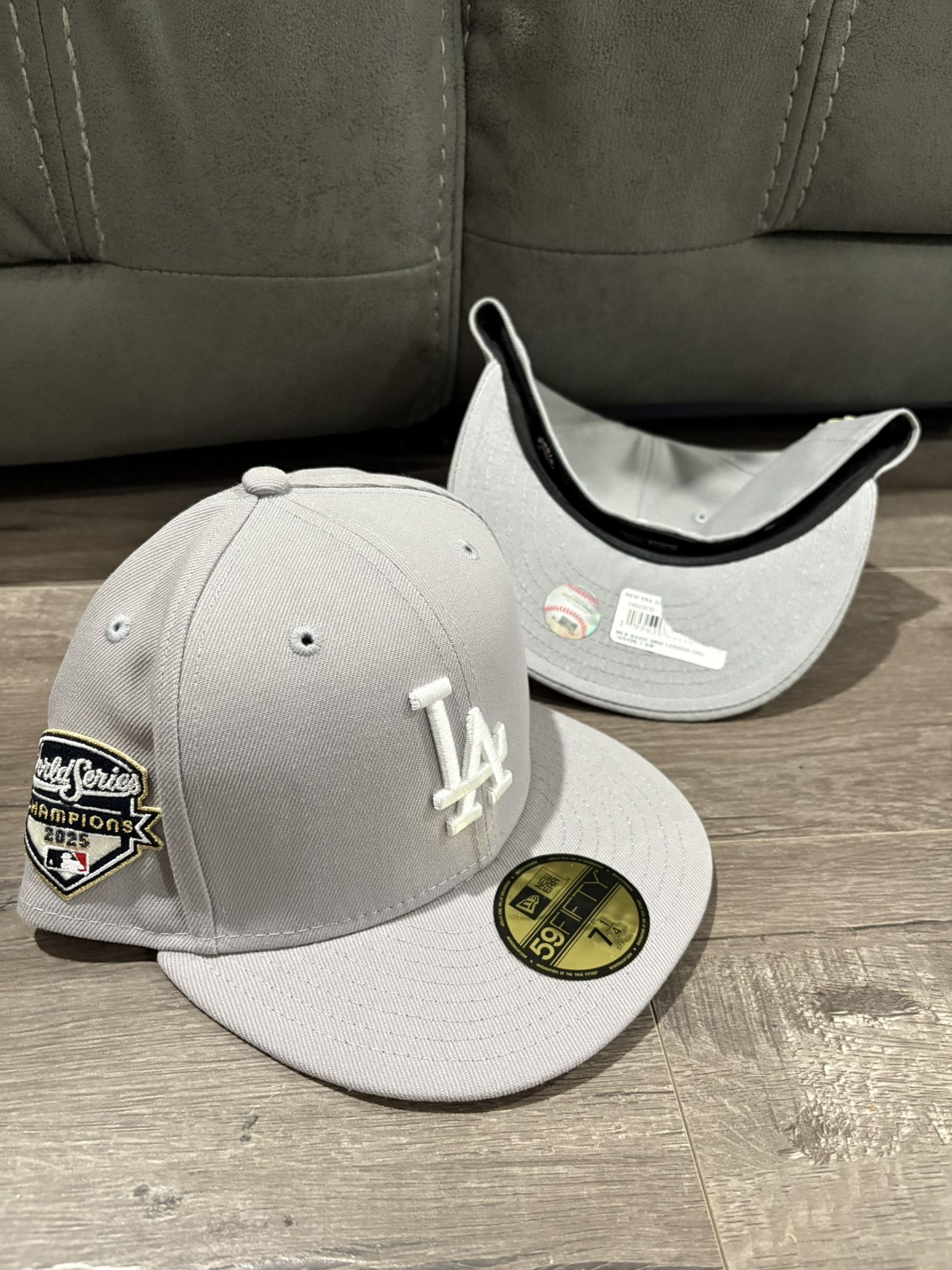 MLB New Era Los Angeles Dodgers Grey 2025 World Series Champions Patch 59fifty Fitted Hats Size 7 1/4