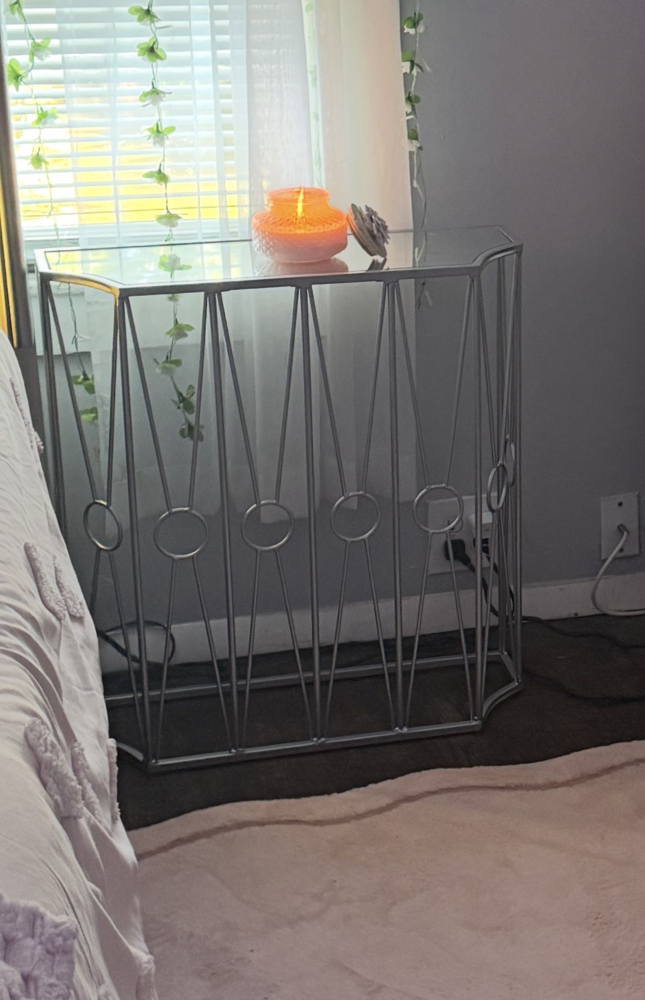 Beautiful modern side table for girls room or any room. Glass top. Practically still brand new , lightly used.