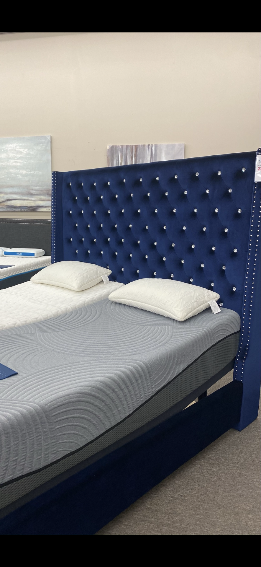 Moving apartments next week and selling this luxury royal blue bed. Good condition. It needs to be picked by next Thursday. It is an entire bed, not just a headboard.