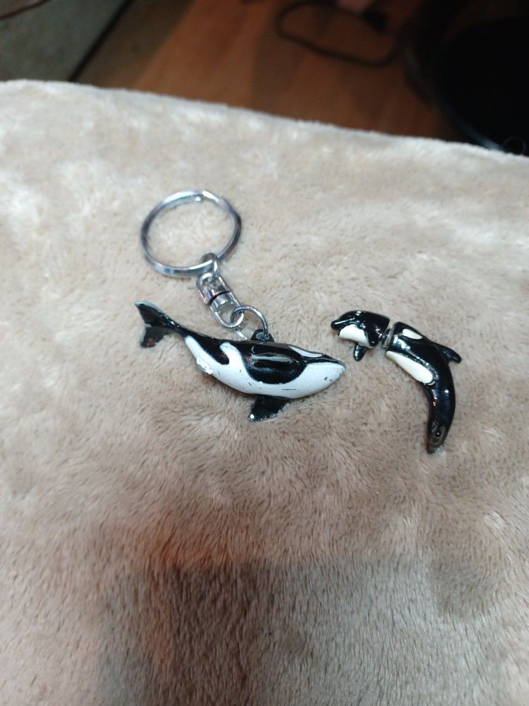 KILLER WHALE LOVERS KEYCHAIN N EARRINGS