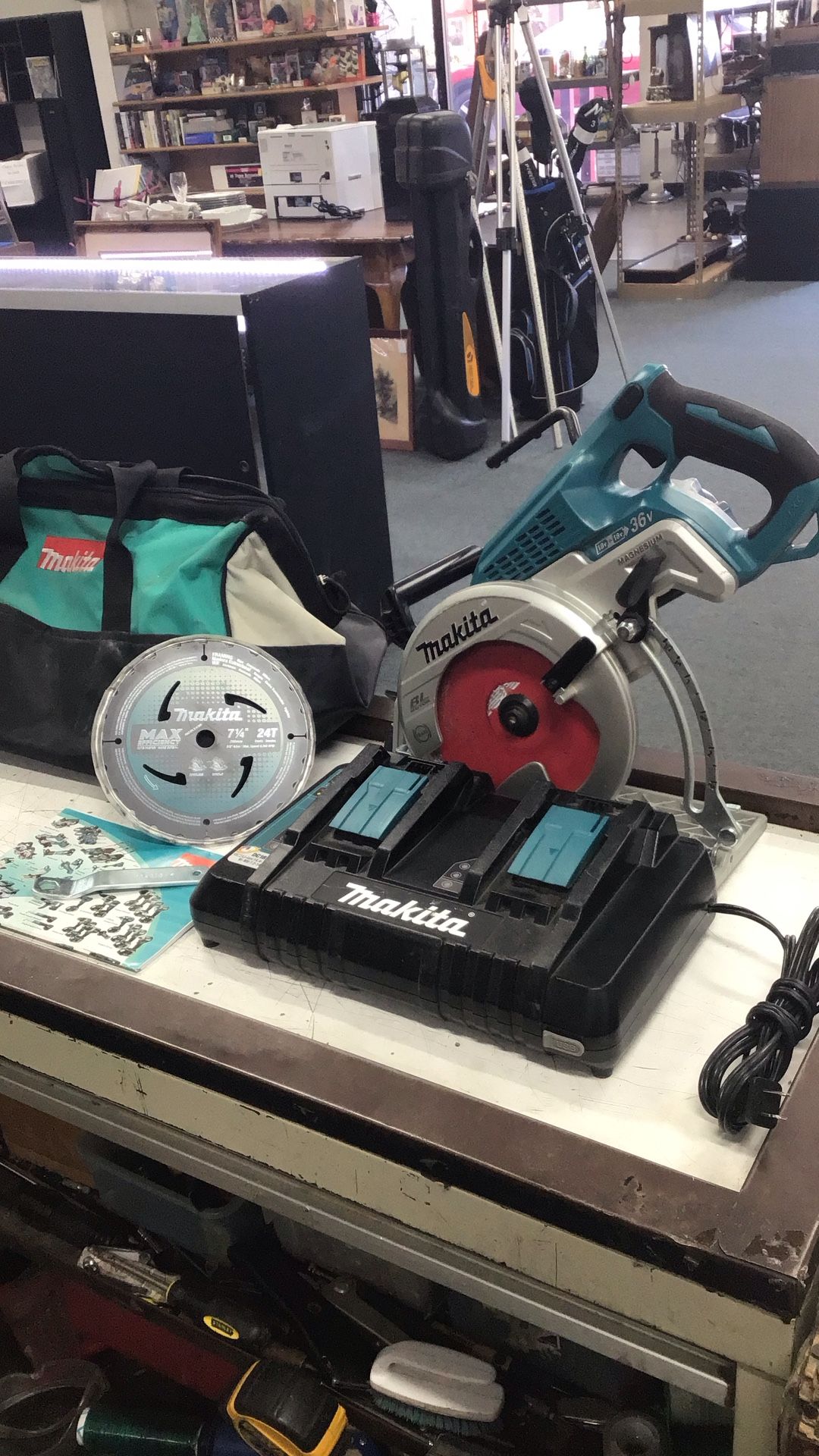 Makita Circular Saw 7 1/4” Blade Brushless Magnesium 2 Batteries 5.0 Dual Charge r Extra Blade And Case