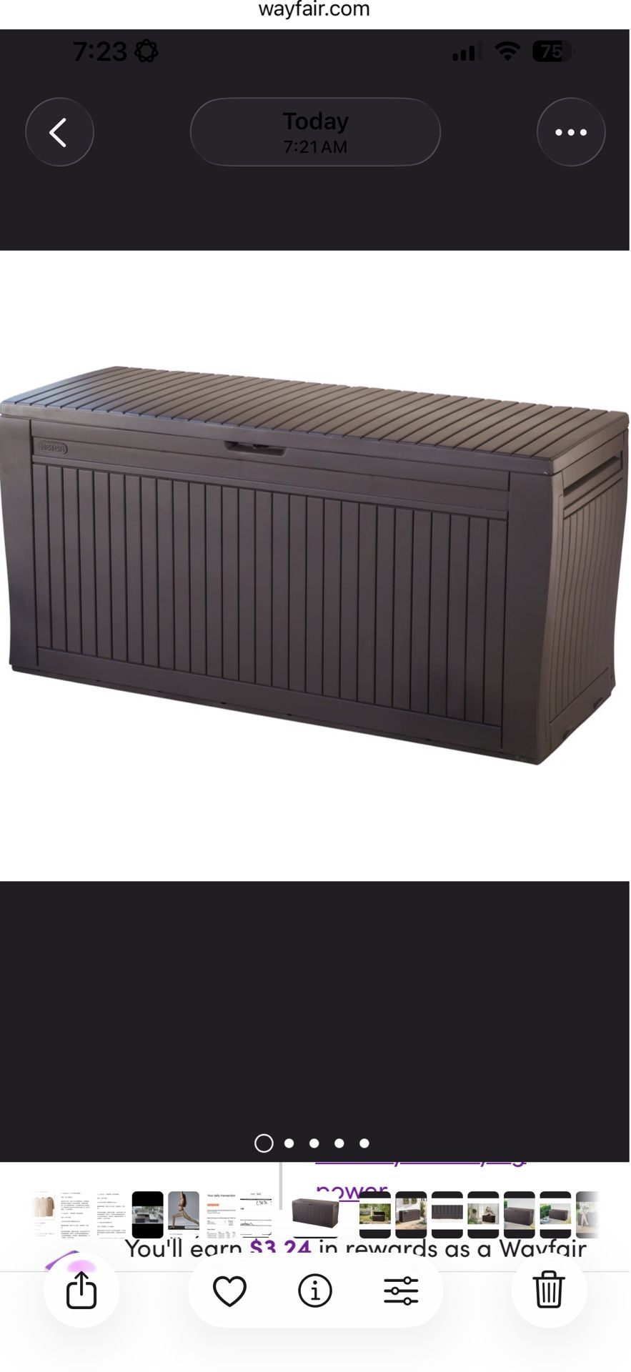Brand new Comfy 71 Gallon Durable Resin Outdoor Storage and Organization Deck Box Ideal For Garden Patio Furniture and Supplies It is still In Original shipping box never been open Set up needed