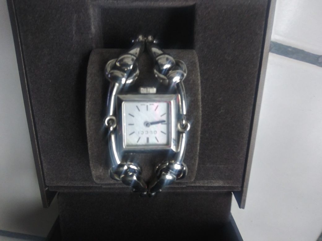 Gucci stainless steel mother of pearl horsebit Style watch.Comes with original Box ,links,paperwork and receipt for $1195.Buy your wife or girlfriend or side girl something nice for once.