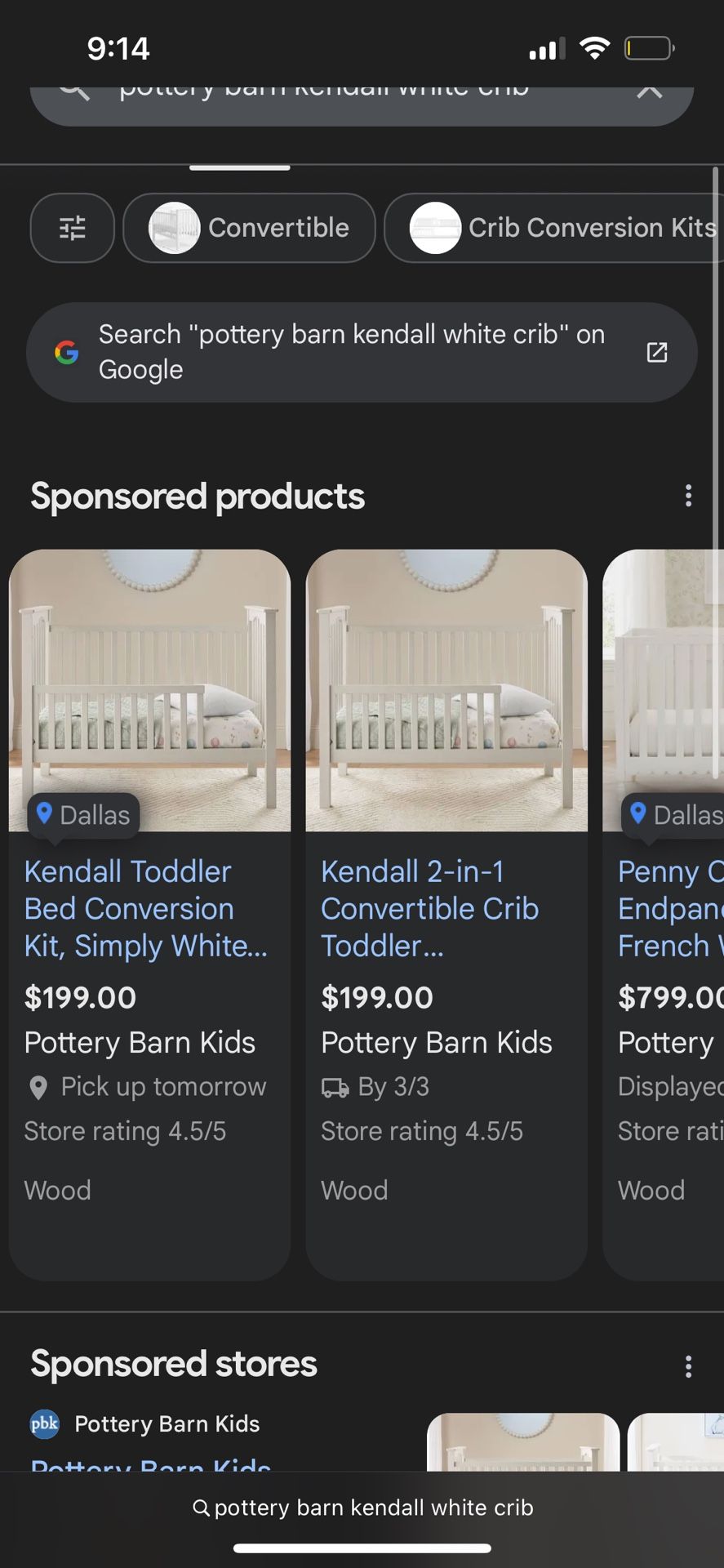 Pottery Barn Kendall 2 in 1 Convertible Crib With Mattress