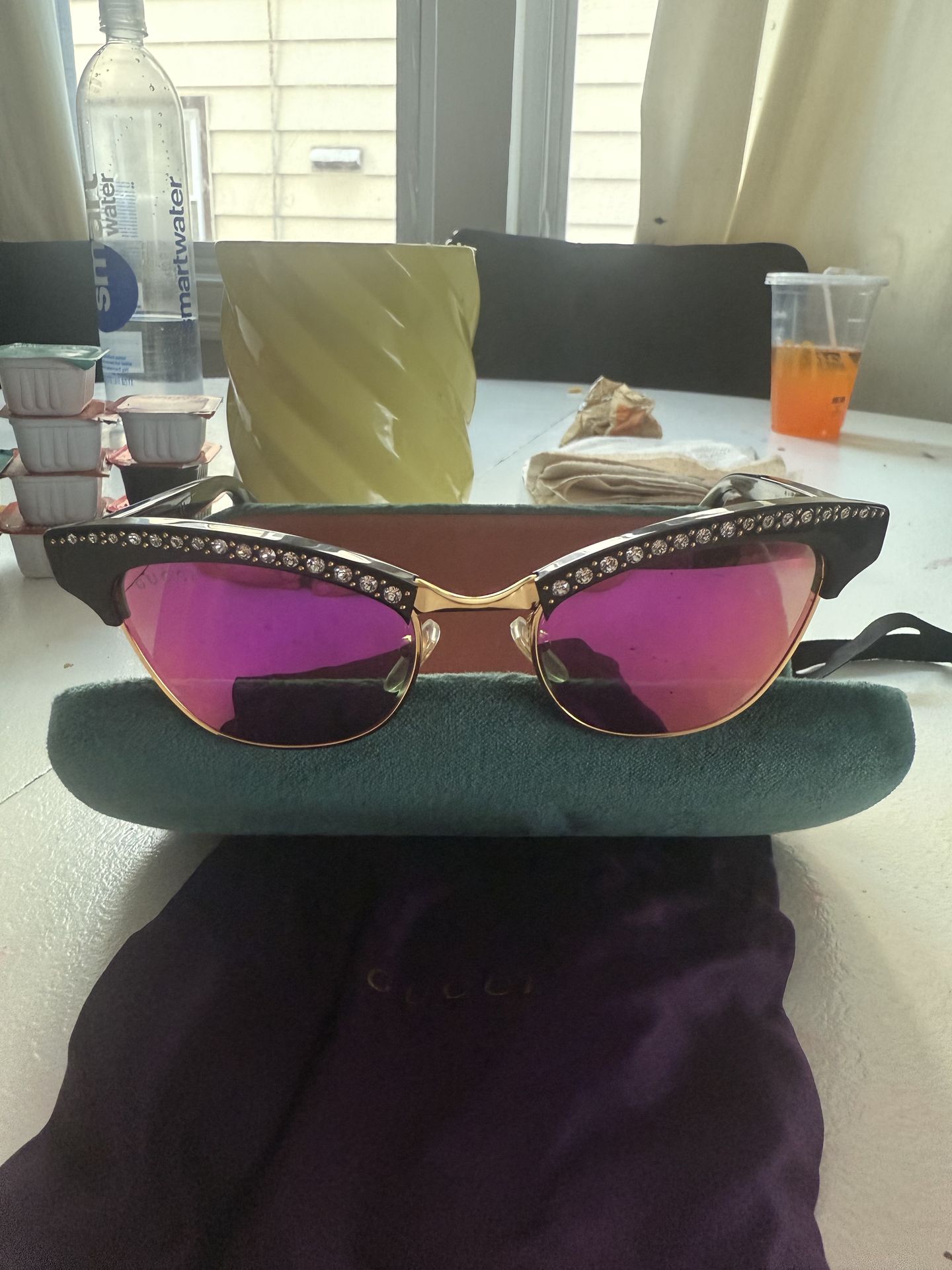 Gucci GG0153s cat-eye sunglasses with black frame and pink mirrored lenses comes with case great condition !