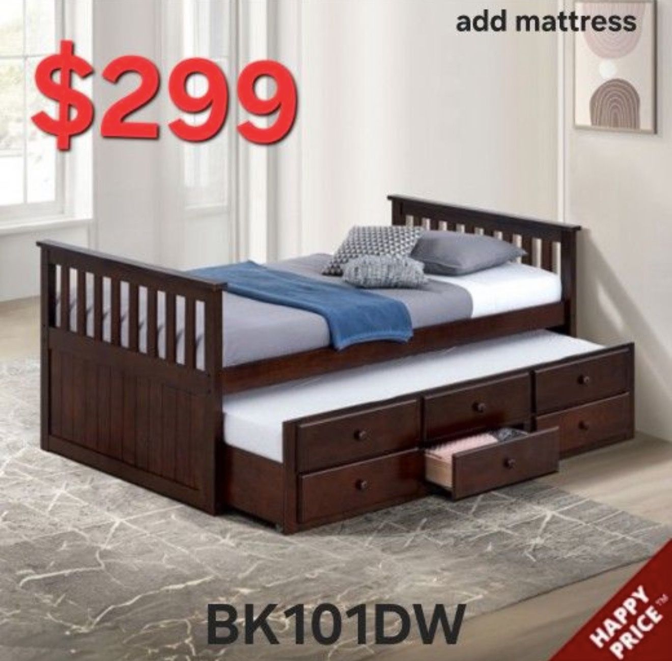 TWIN BED PLUS TRUNDLE WITH DRAWER SPECIALS EASY CREDIT FINANCE NO CREDIT CHECK NO MONEY DOWN