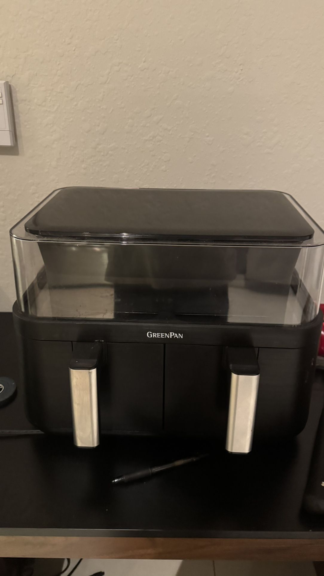 Nontoxic ceramic dual buck air fryer from green pan. No PFAS or forever chemicals. Originally bought it at 200 bucks selling for $120 Used only a few times Local pick up only, must be able to meet at the garage of my building