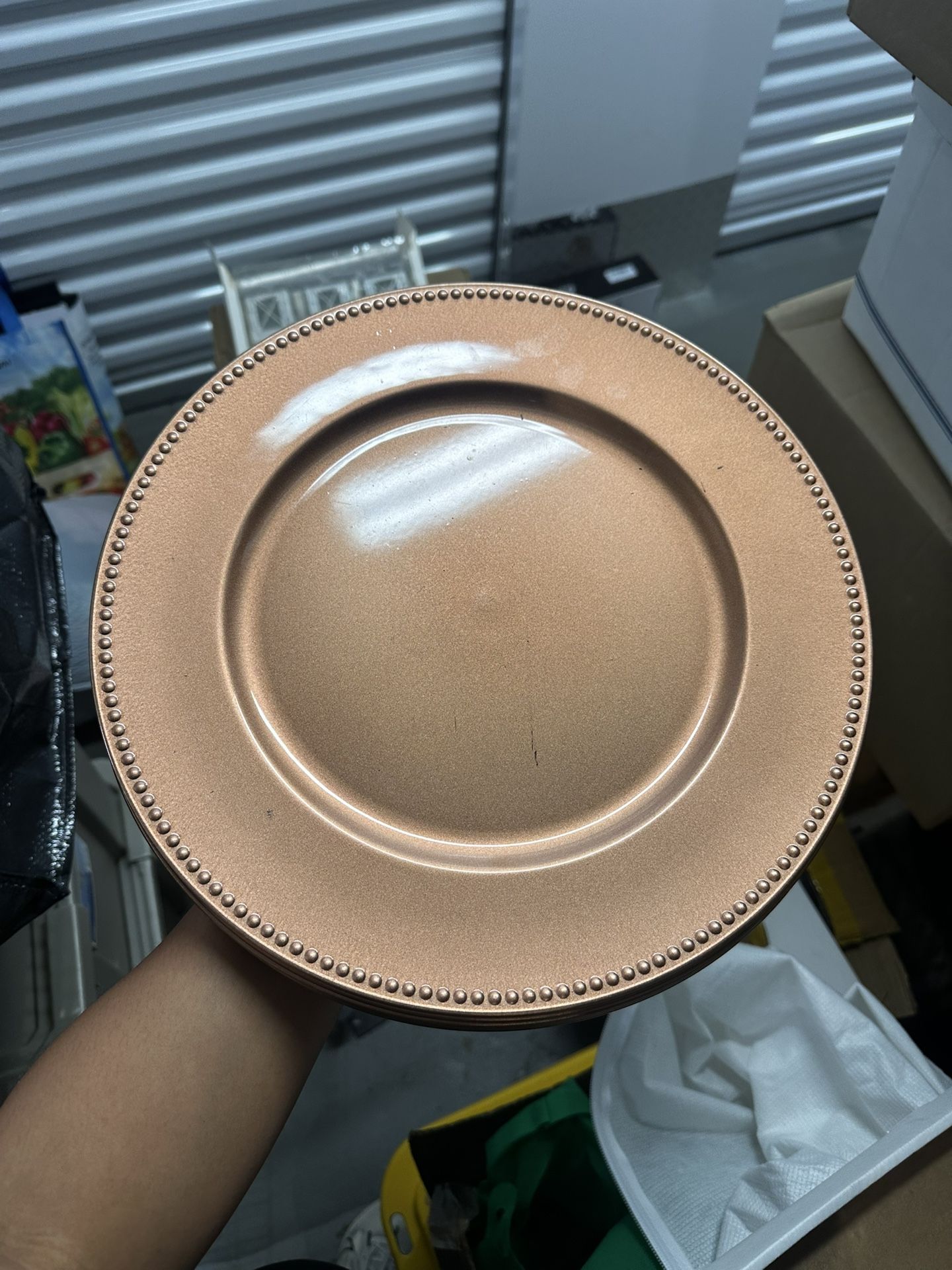 Bronze plastic charger plates 10 total 1 plate has a crack (pictured)