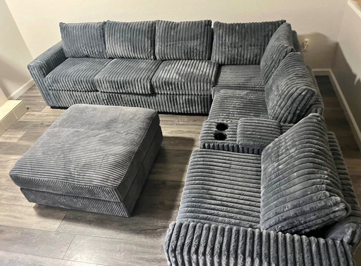 ๐๏ธ NUEVA SALA EN CAJA๐ฆ Estilo โLโ Corduroy Material ๐๏ธ USB Enchufe๐ Color Gris oscuro o gris claro disponible โ Porta Vasos ๐ฅค Entrega Disponible ๐ Abierto 7 Dรญas/Semana Bakersfield ๐