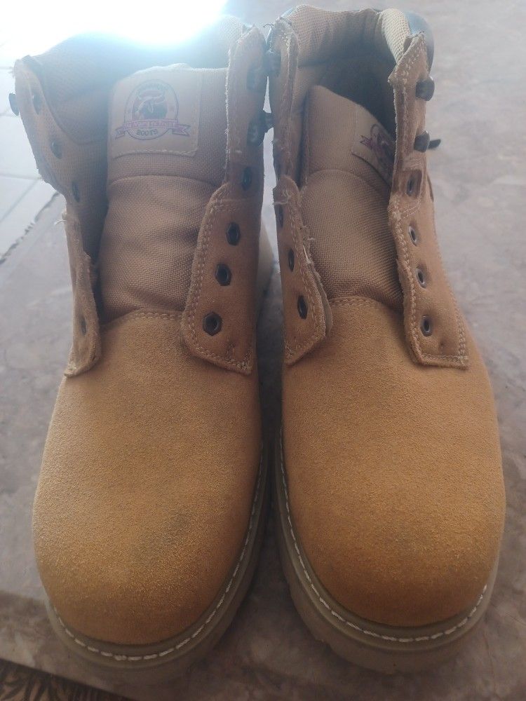 Sturdy yellow men toe boots they need shoe laces you can purchase at k swiss outlet No rip I'm asking 40 I don't have exact change please do come with the amount okay thank you have a nice day!