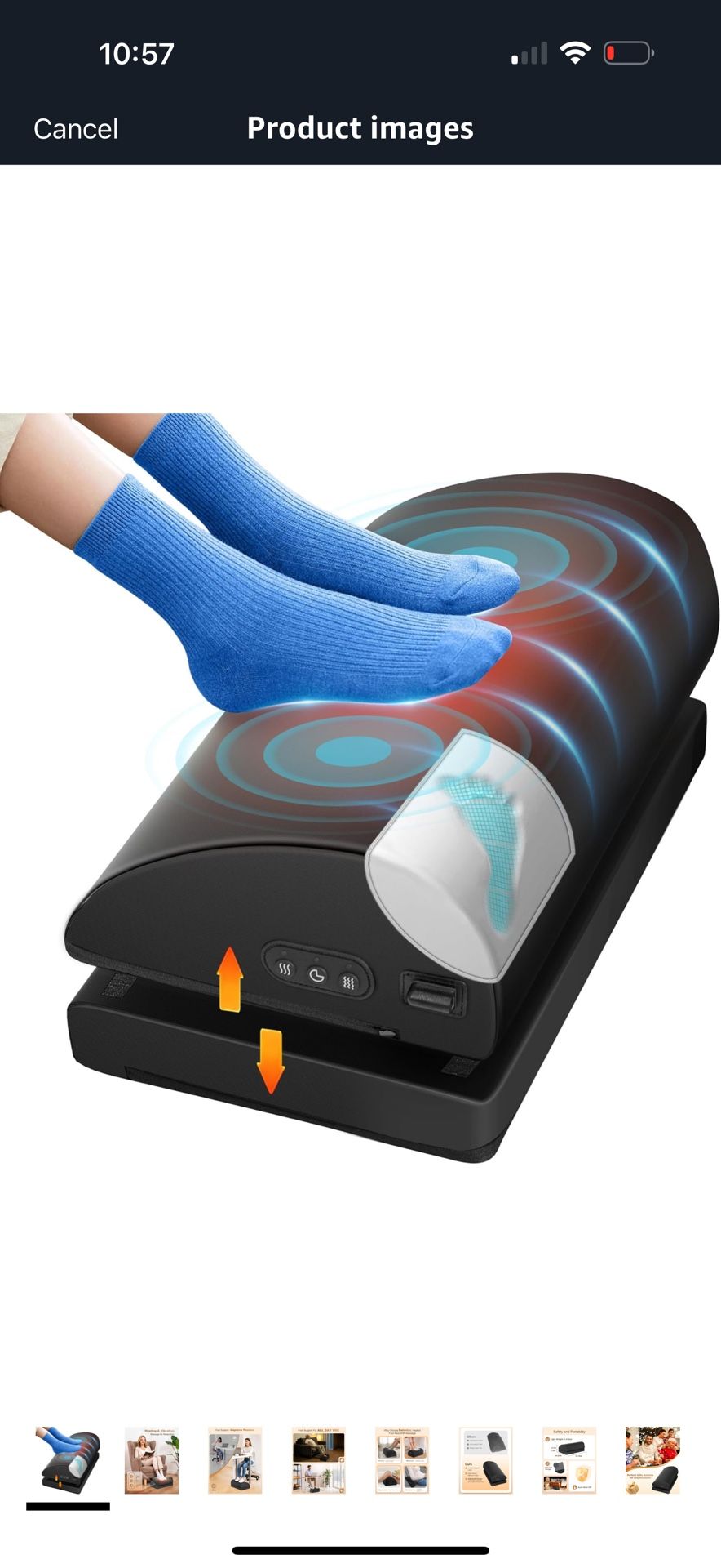 Foot Rest for Under Desk at Work, Heated Foot Stool with Vibration Massage, Adjustable Height Memory Foam Foot Stool,2 Heat Levels Ergonomic Desk Foot