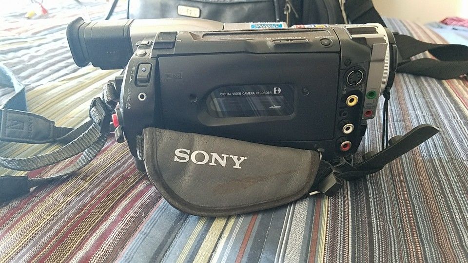 sony digital handycam. 360x digital zoom. steady shot, color LCD monitor, night vision, more features....comes with 6 tapes, head cleaning cassette, and camera guide, remote with audio video cable, charger, and leather bag.
